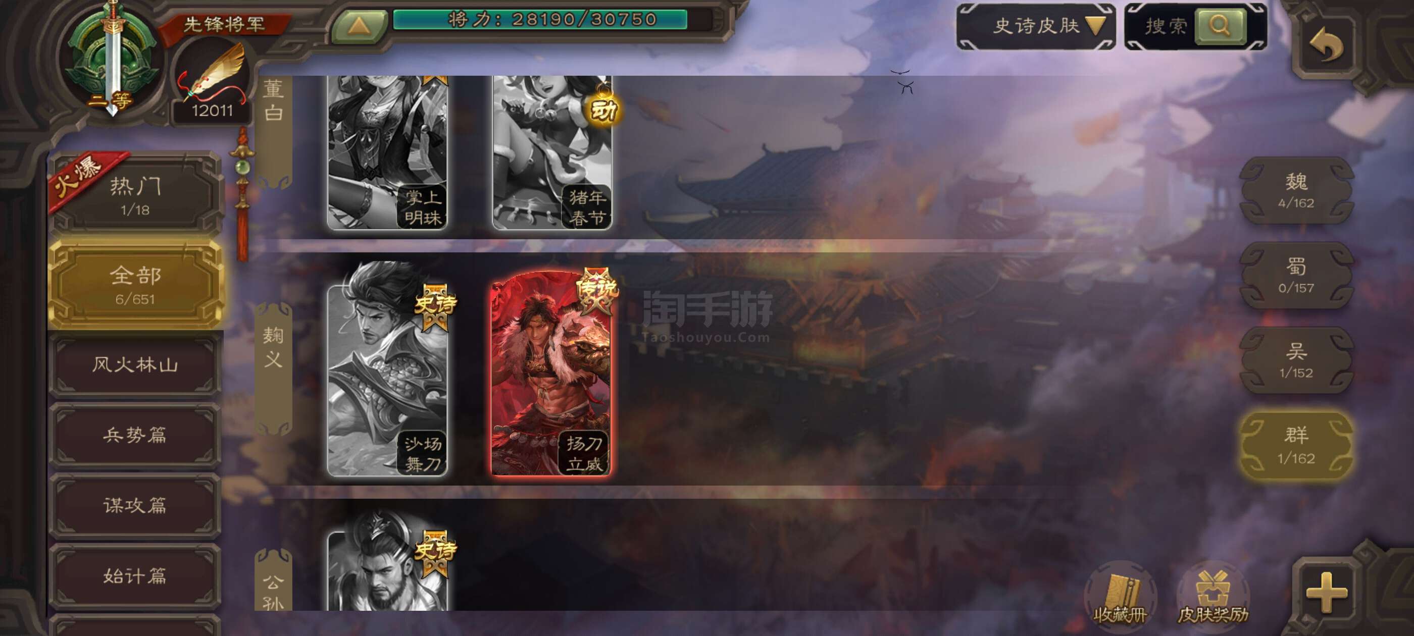双史诗双神先锋,乌鸦动态界钟会杨修,神周瑜神吕蒙势陈到谋小乔桥公甘夫人崔琰138将