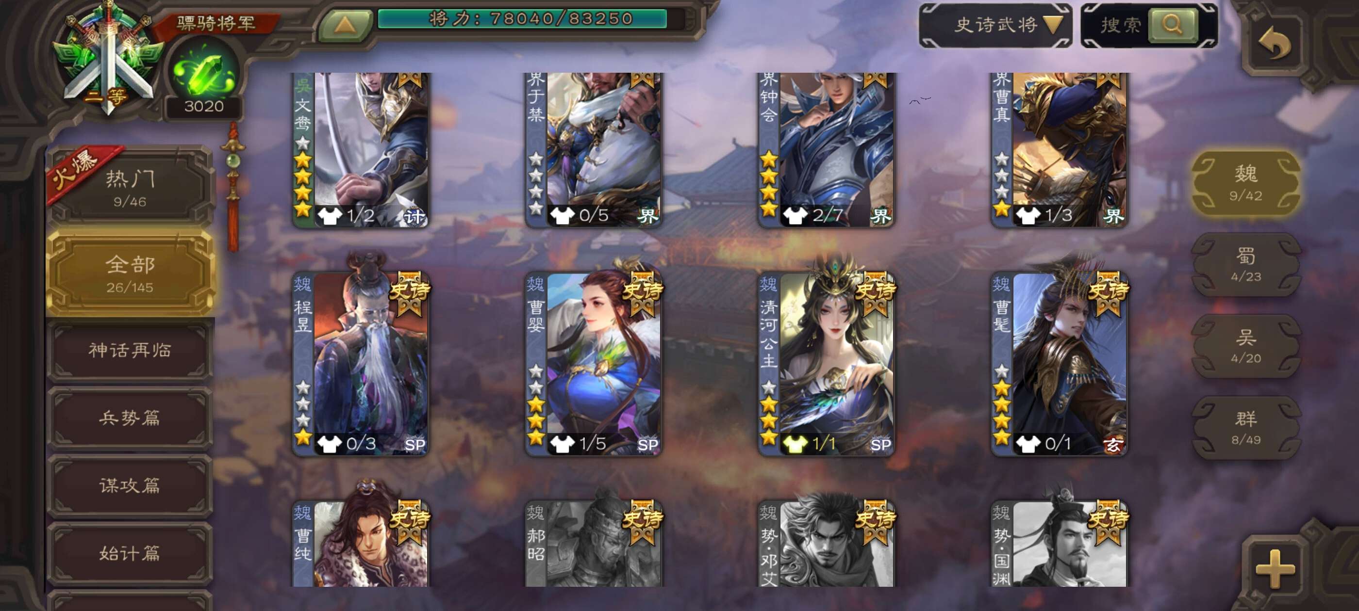 5史诗先锋,6万羽毛5万豆,界钟会沙摩柯谯周嵇康杨修,神吕蒙张春华崔琰界关羽孙茹凌操155将
