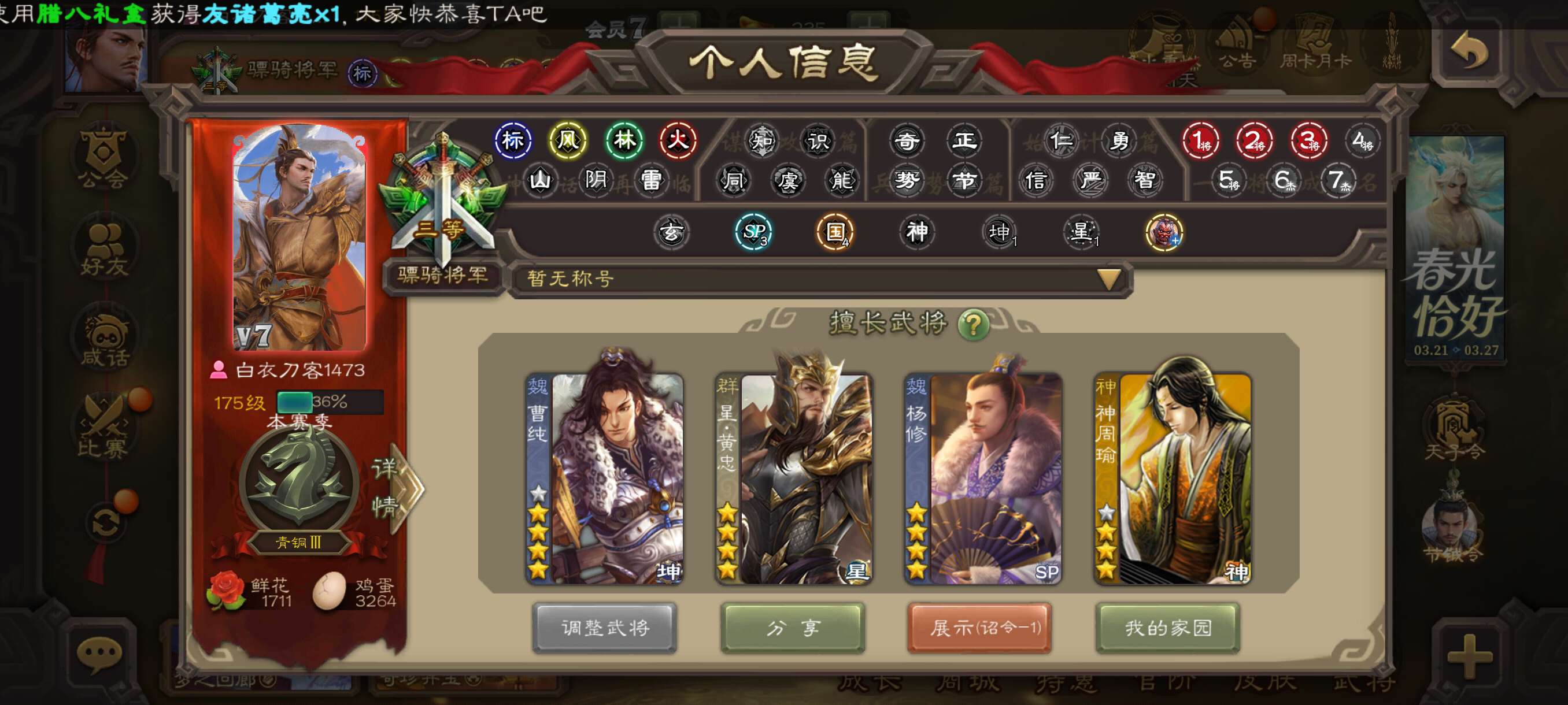 63将超级兵,7500将魂6万羽毛,大宝界徐盛周处,天工张既,势陈到势田丰张布,152招募令
