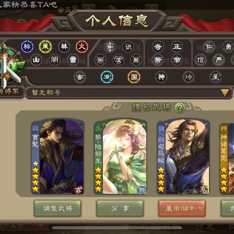 三等大将军 1.2w心愿积分 势太史慈/老宝/大鬼/裴秀/大宝/小鸟/老宝/曹髦