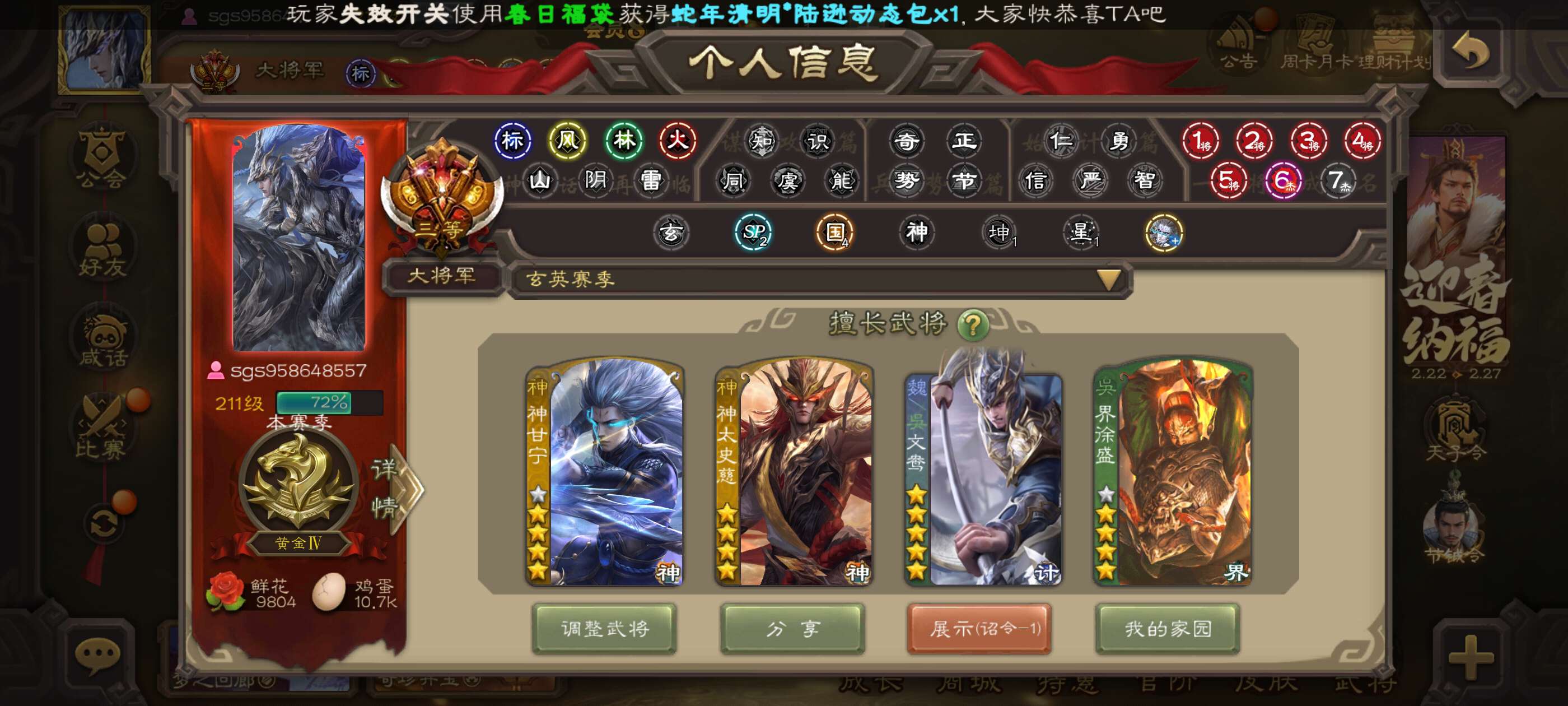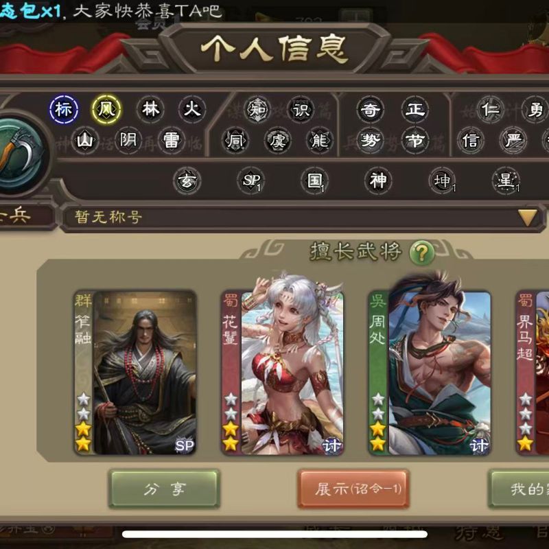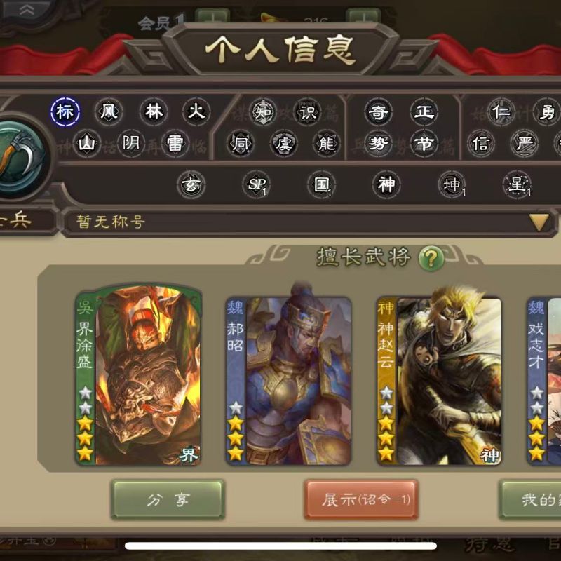5史诗双神先锋,6万豆,天工闫象,回廊动态界李儒动态花鬘界于禁谯周沮授,神吕蒙神周瑜动界曹丕142将