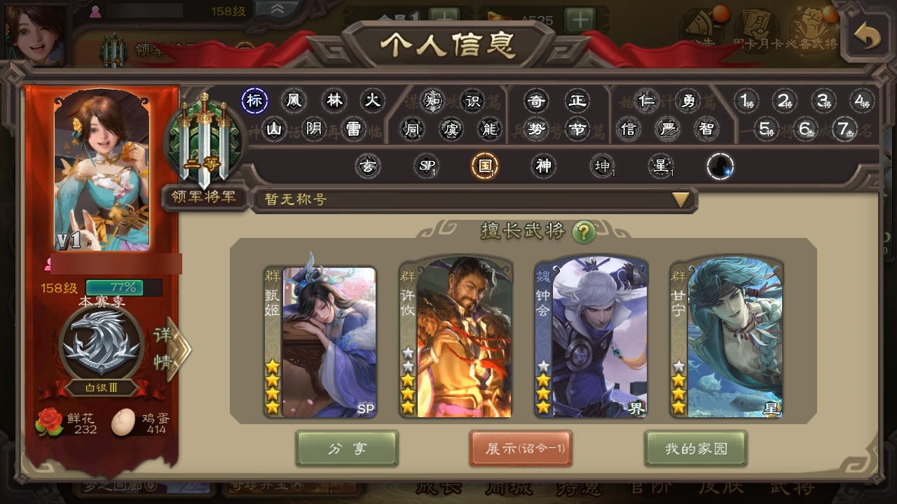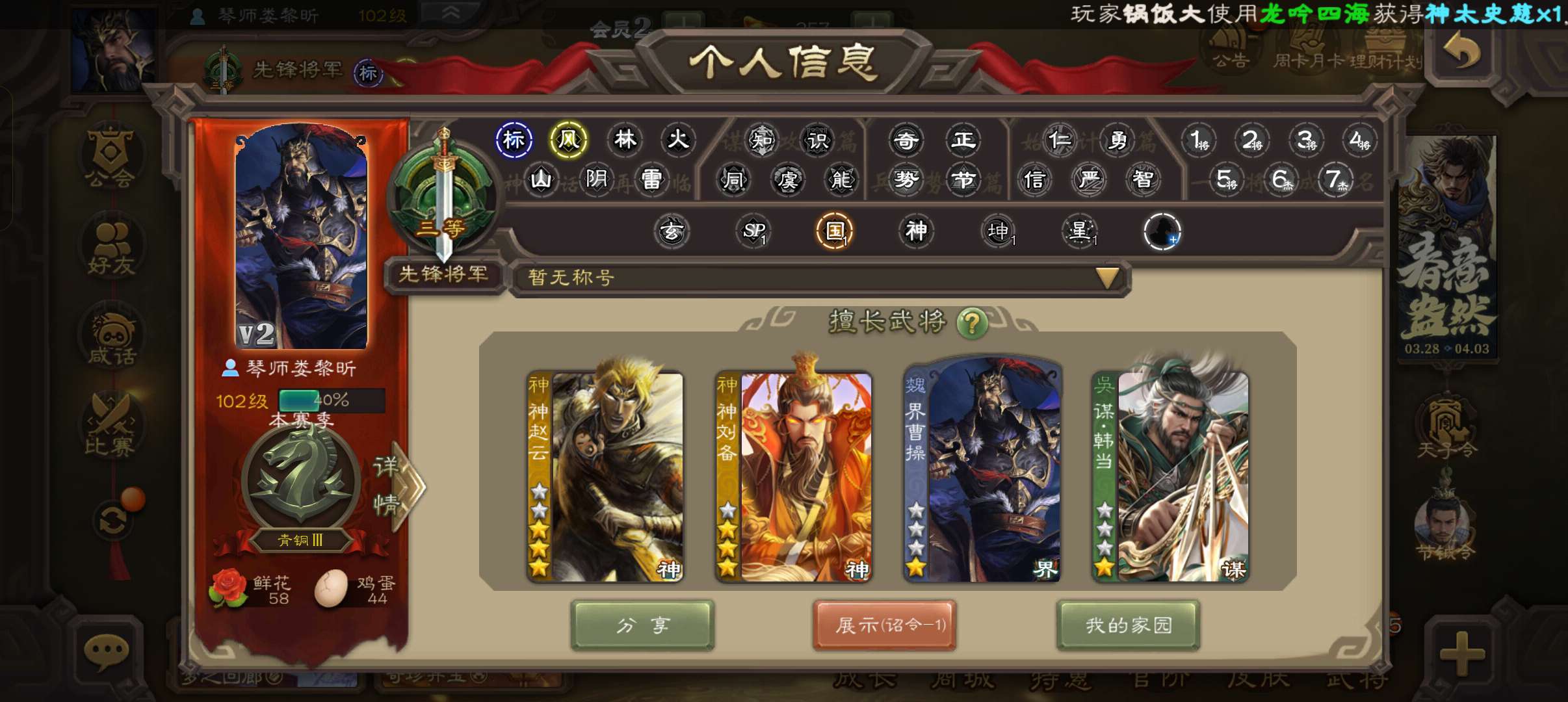 4史诗双神先锋,天工鲍信,回廊动白马花鬘谯周杨修,神周瑜神吕蒙动界关羽动钟繇霍峻谋小乔157将