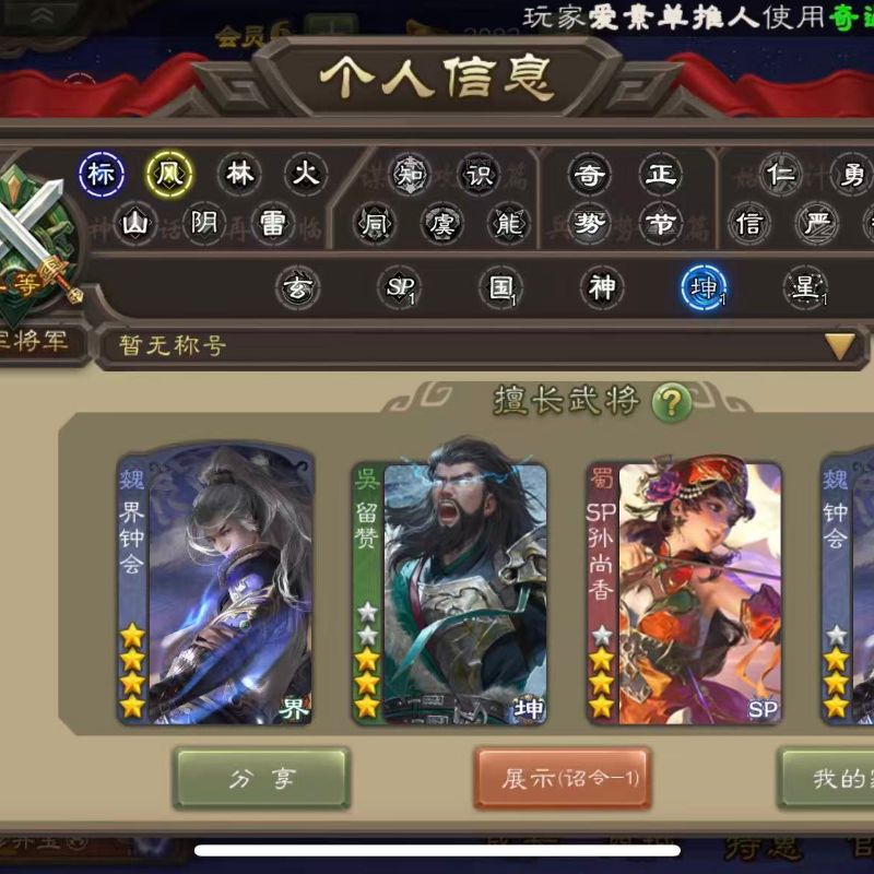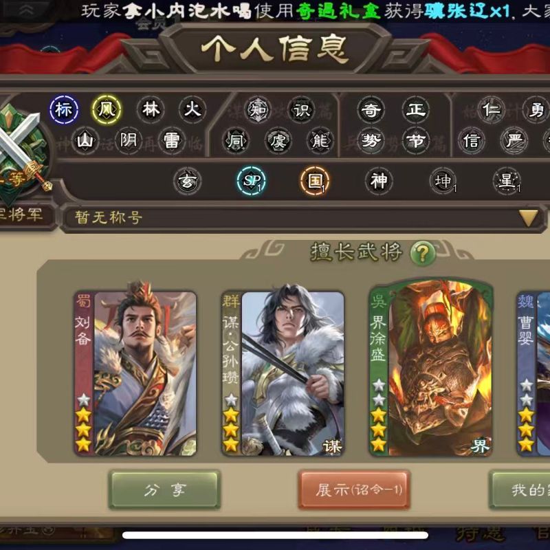 7史诗先锋,4.8万羽毛,谋夏侯惇界钟会沙摩柯神吕布界朱然杨修左慈,桥公崔琰界张嶷界曹休134将