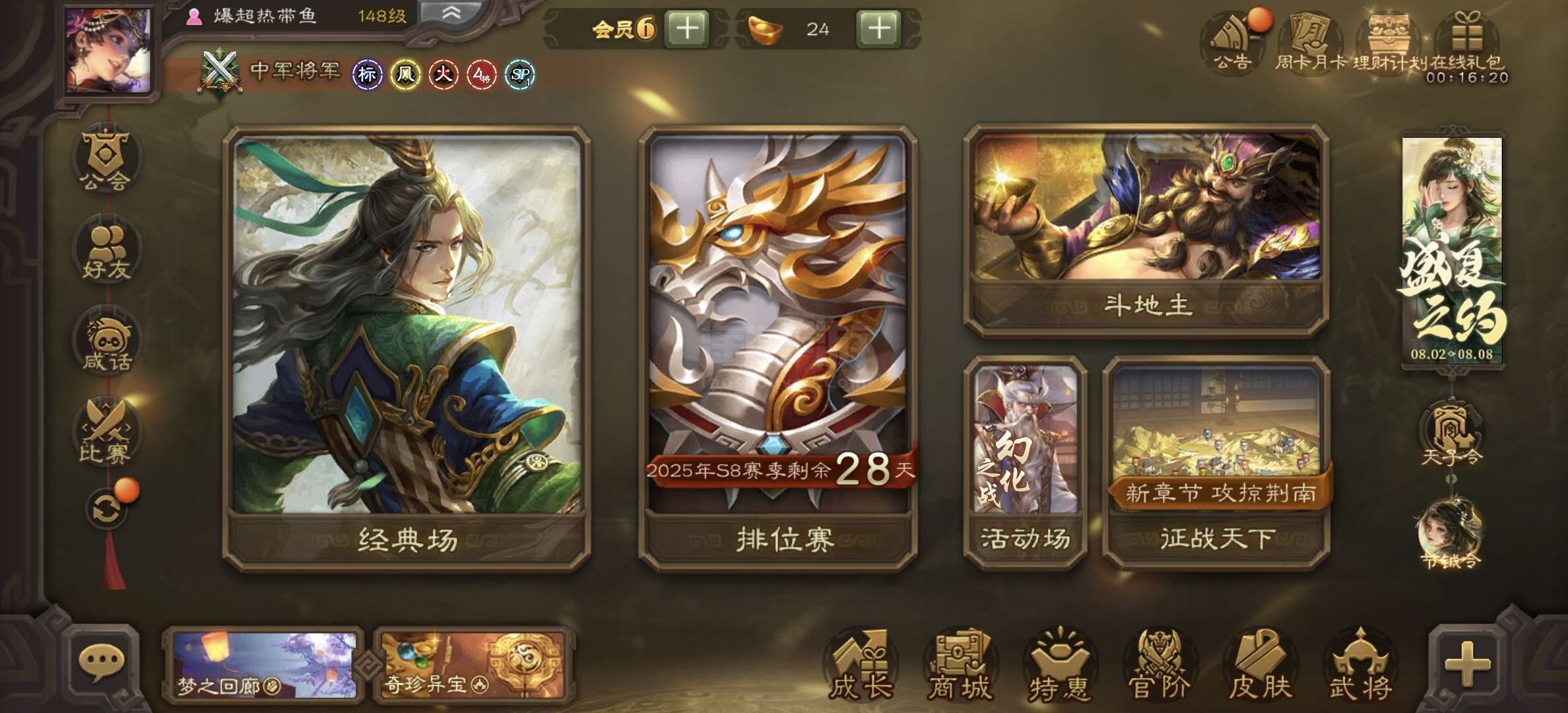 4万豆,回廊动态界黄忠神吕布谯周花鬘杨修5史诗先锋,神吕蒙霍峻谋卢植崔琰友庞统139将