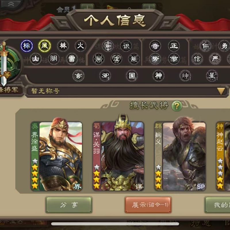 6史诗先锋,8.7万羽毛4万豆,神赵云王平赵襄杨修贺齐左慈,神吕蒙崔琰谋高顺150将