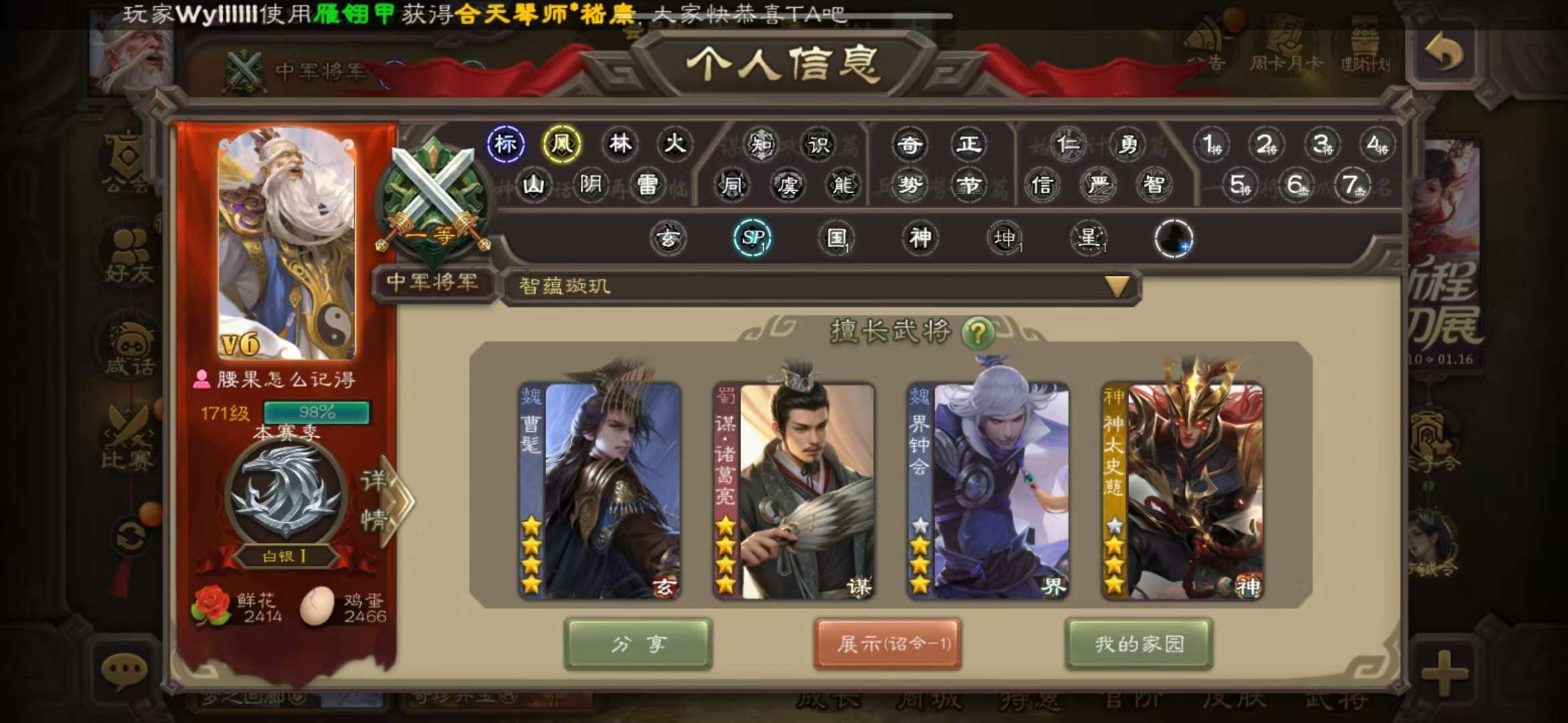 V6中军 有年卡 曹髦 谋诸葛 司马师 势辛宪英 神太史慈