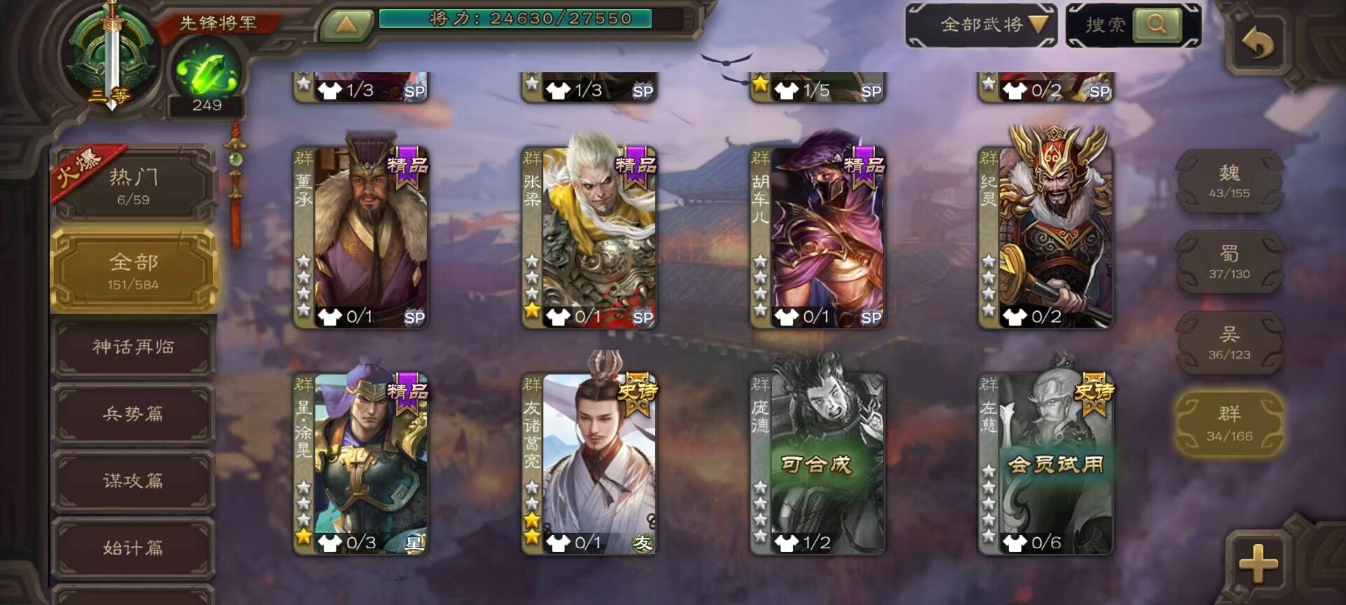 7万羽毛4万豆4千魂(攒攒回廊动白马),神赵云神吕布界钟会3史诗先锋,动态界陆逊谋韩当谋卢植150将