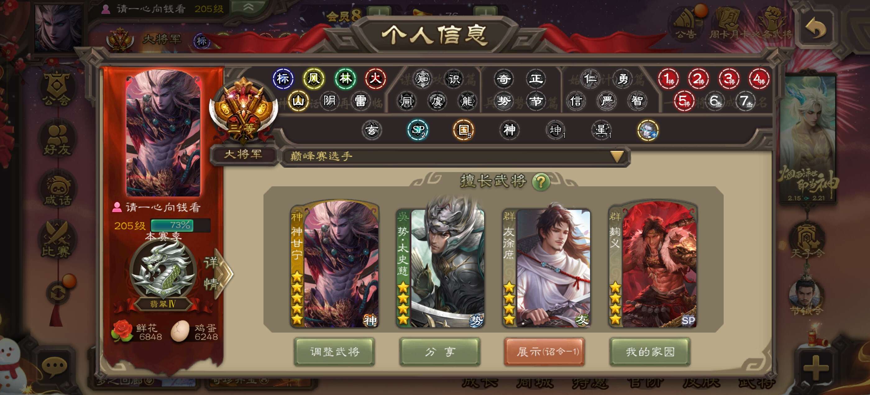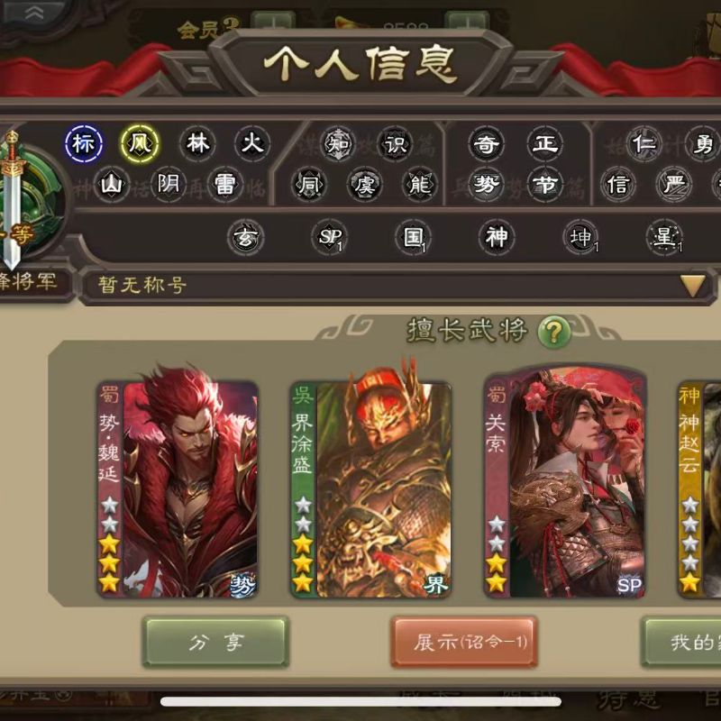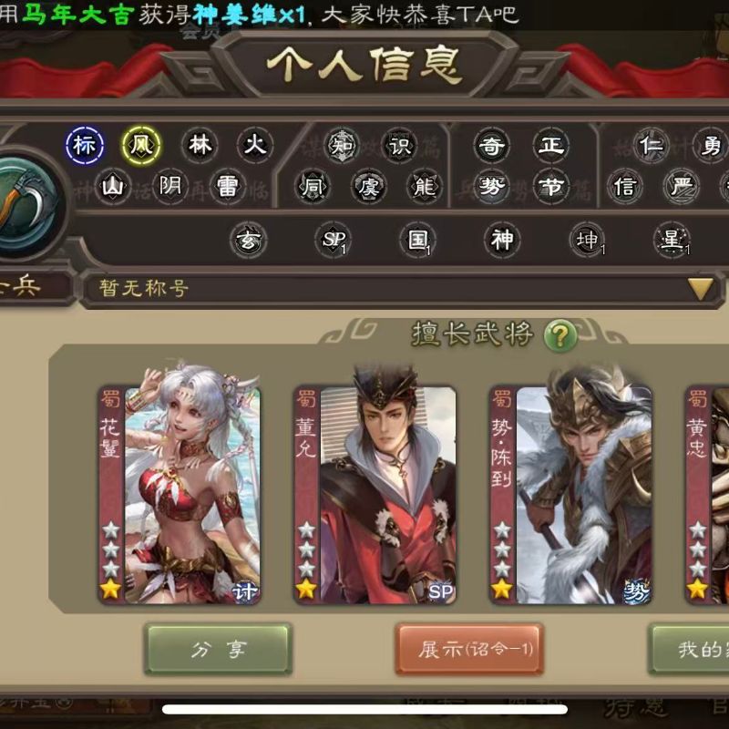 大将军 神甘 神太 神赵 势太 自己看 超多动皮 节令天子令全开 有月卡