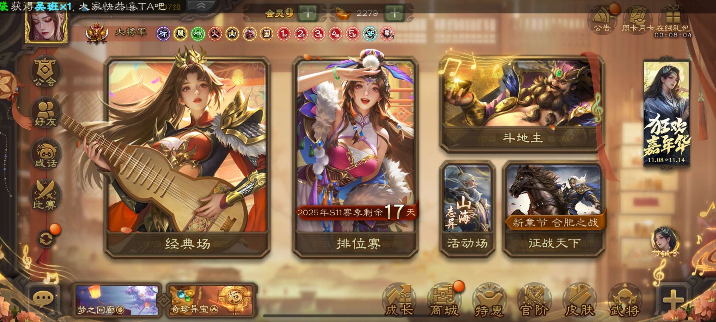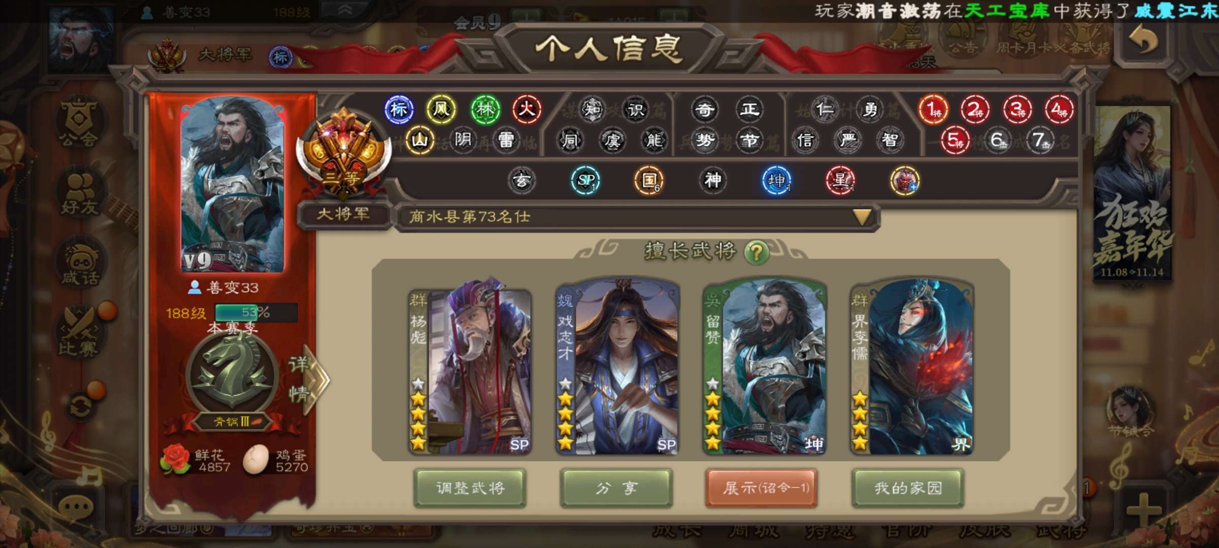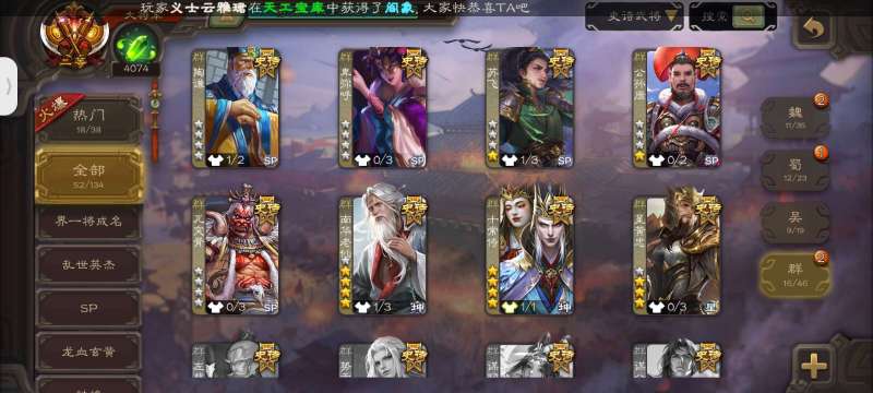 三国杀【安卓官方】8史诗中军,7.5万羽毛,金皮大宝界徐盛神吕布界钟会沙摩柯谯周界于禁杨修程昱,神吕蒙动界荀彧162将
