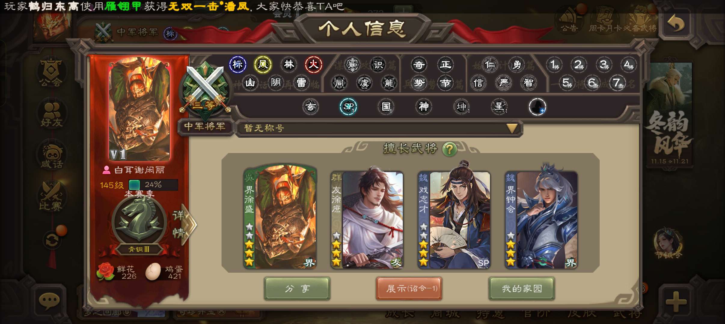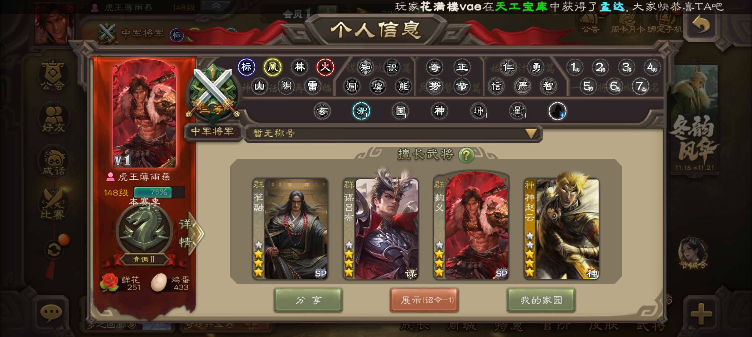 三国杀【安卓官方】9史诗中军,8万羽毛7万豆,友徐庶,回廊动白马神赵云界钟会沙摩柯谯周界于禁谋赵云赵襄程昱,关银屏桥公