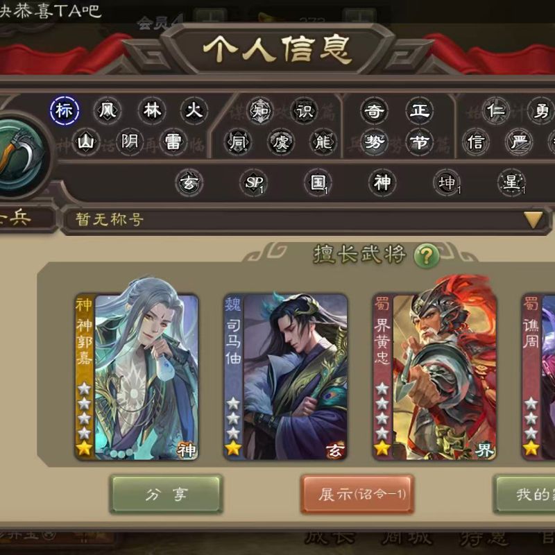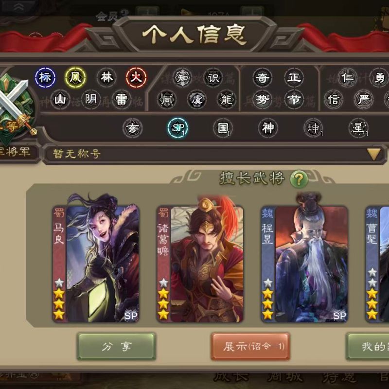 天工谋黄月英,势邓艾花鬘界曹真神张辽嵇康贺齐左慈7史诗一等校尉,甘夫人崔琰谋陈宫115将