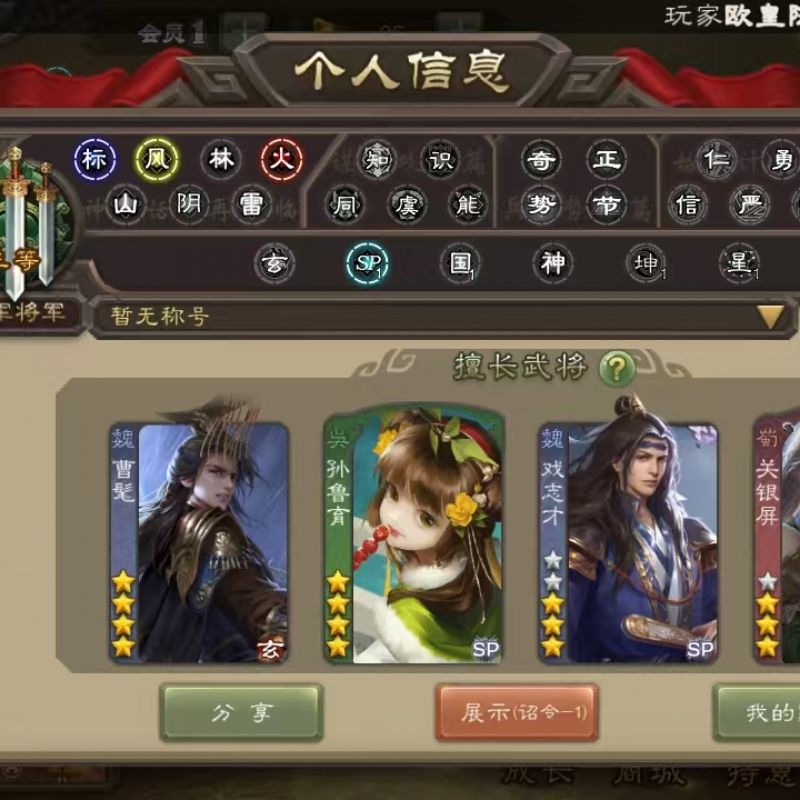 稀有双权一,友诸葛加界沮授,文鸯,大宝,还有超多史诗,气卡豆子很多,还剩了20多宝珠,退游卖号了