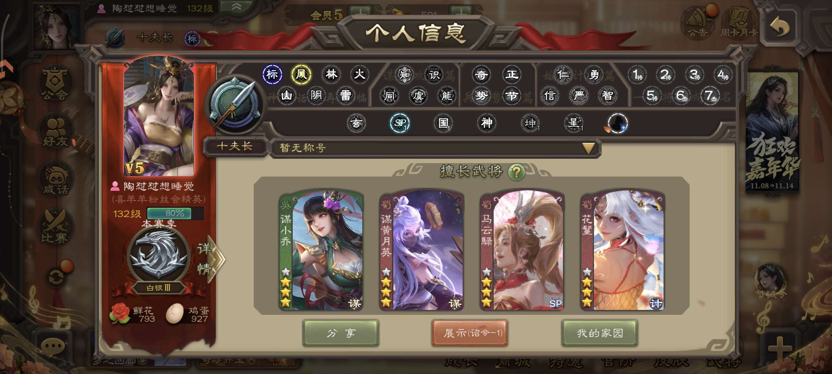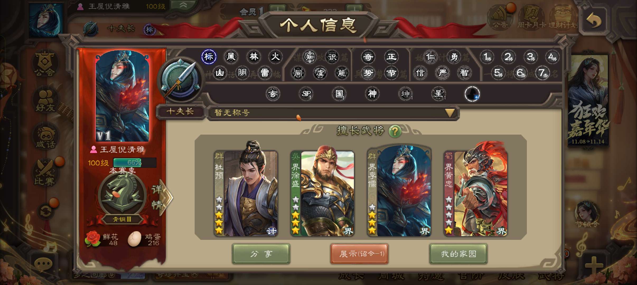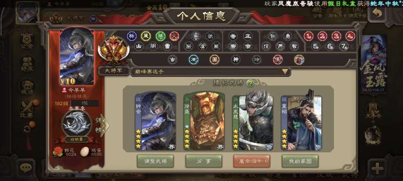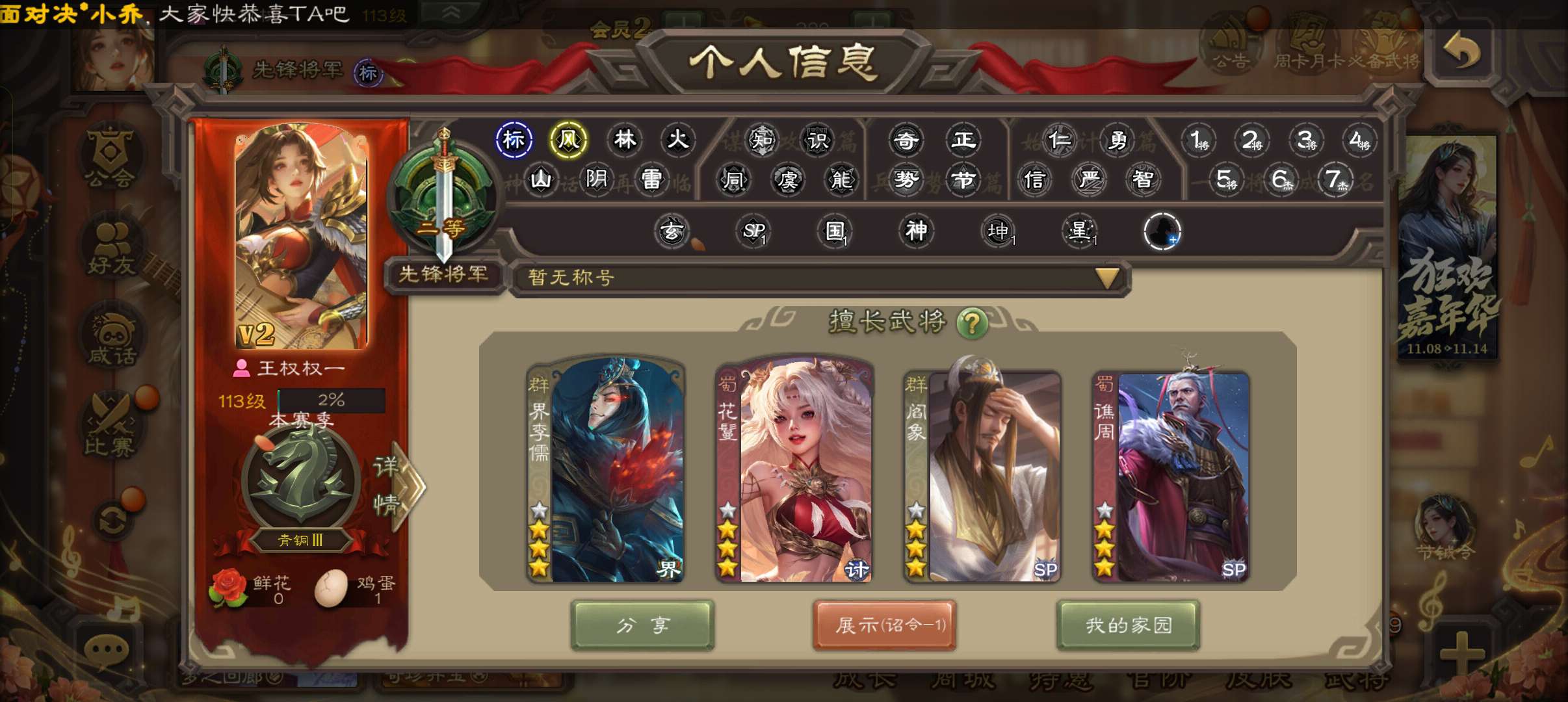 三国杀【安卓官方】友诸葛亮+界于禁+谯周超级士兵开局号!总将61,材料充足,游卡官服字母格式活绑
