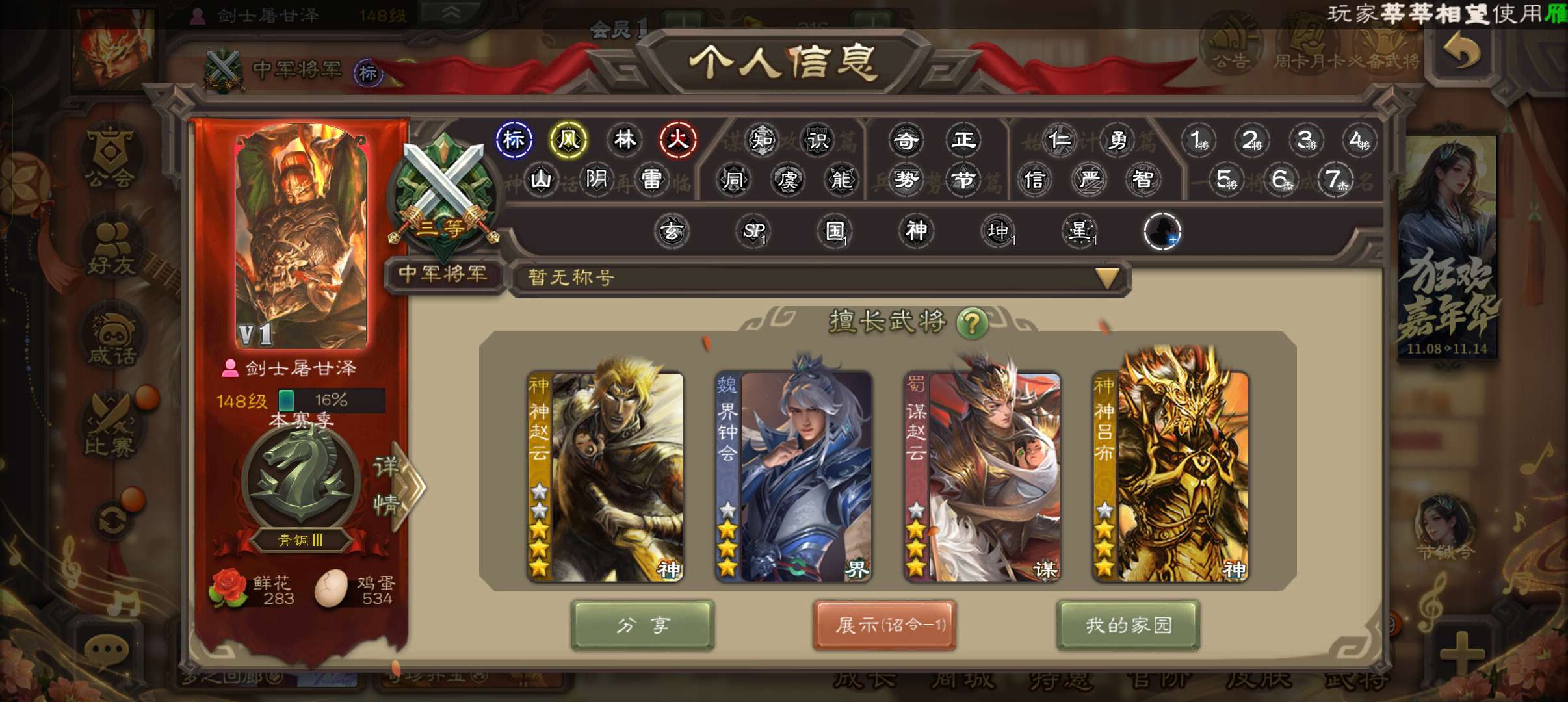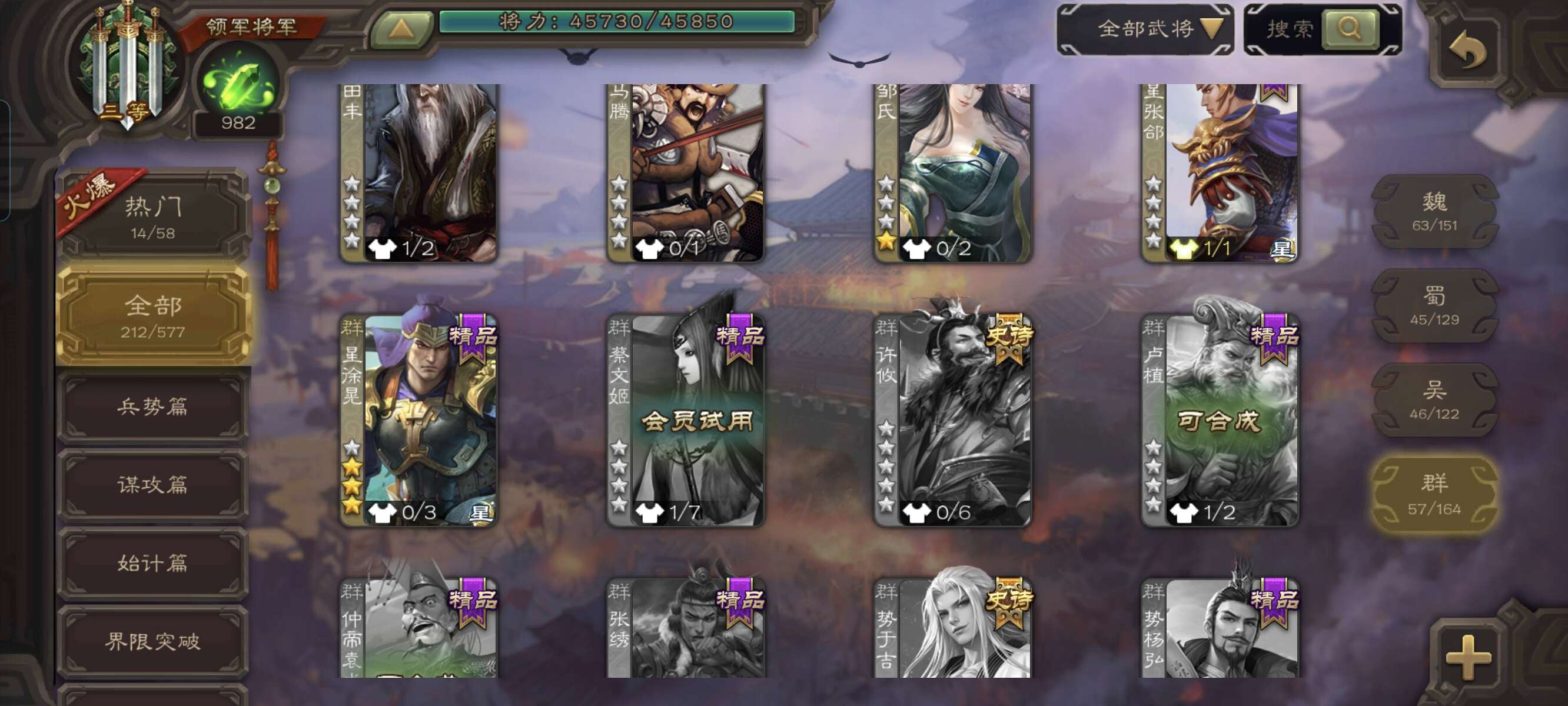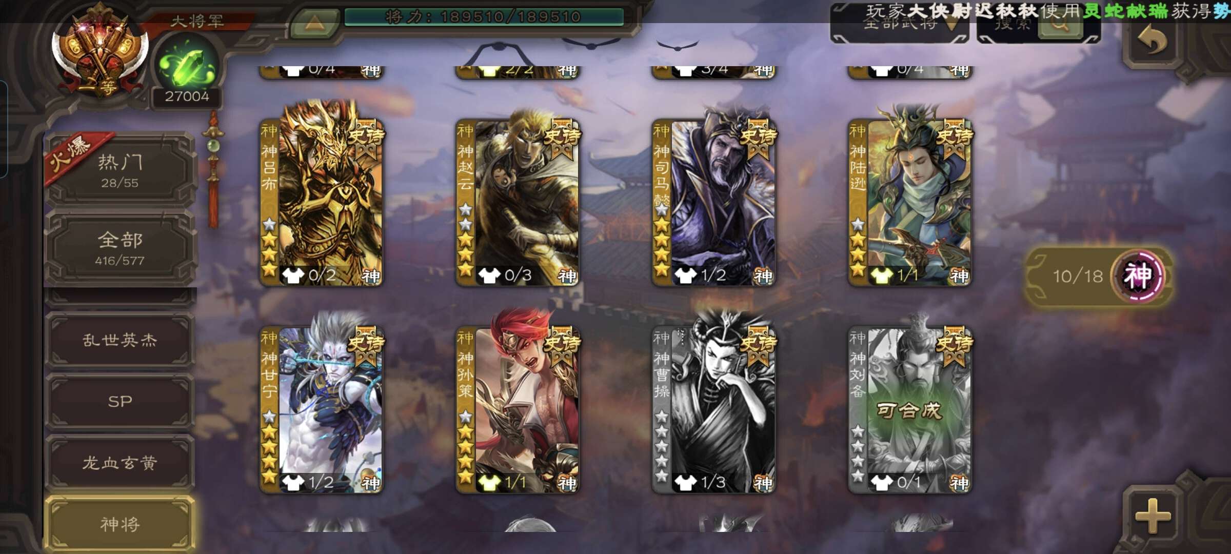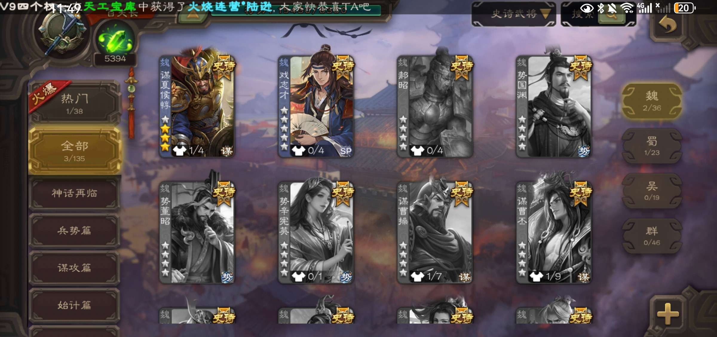 三国杀【安卓官方】9史诗中军,8万羽毛8万豆,神赵云神吕布界钟会谋赵云界于禁界黄忠嵇康杨修程昱,界权谋韩当163将