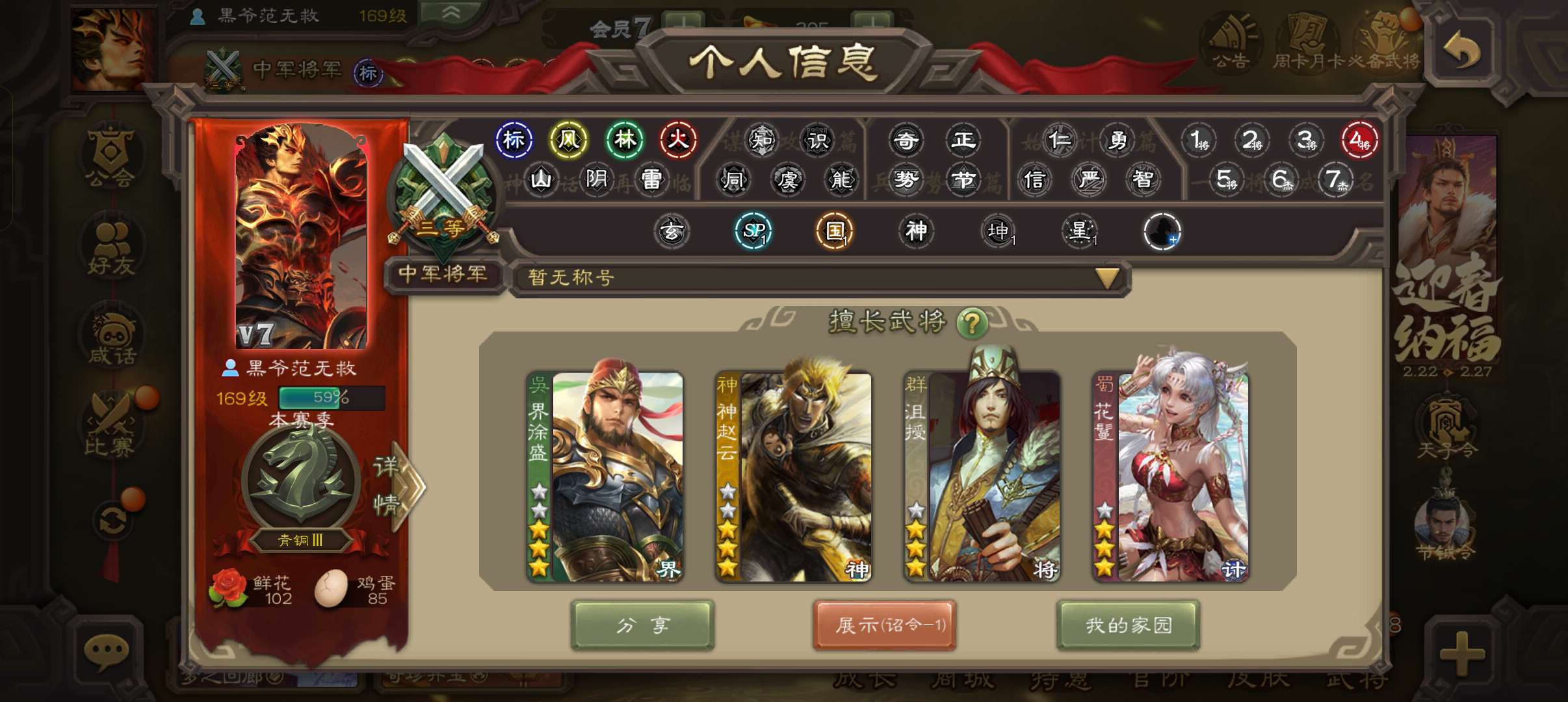 中军将军,8万羽毛1万将魂7万豆,大宝界徐盛神赵云沮授花鬘程昱5史诗,神吕蒙sp赵云关银屏动态界吕布
