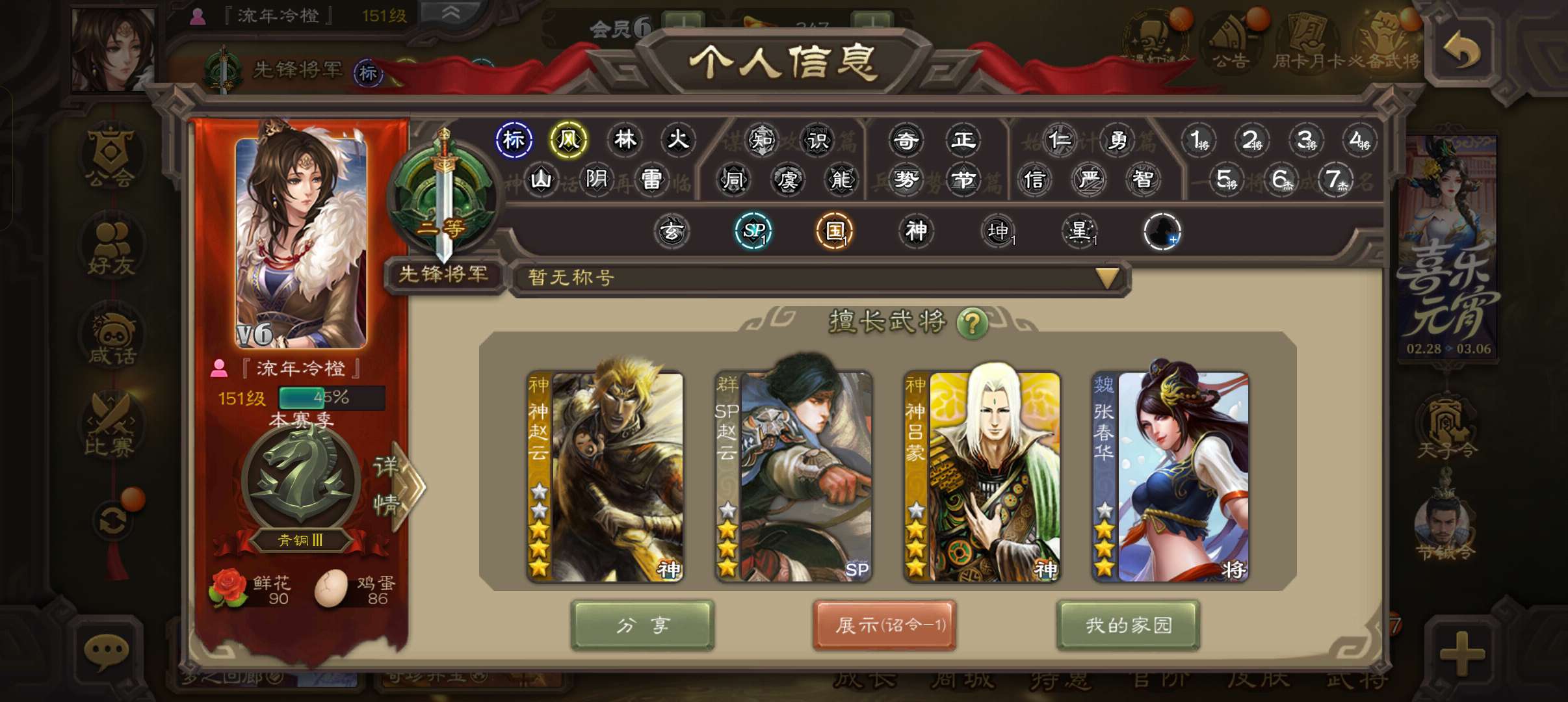 无废将小号,36宝珠8万4羽毛,神赵云谯周双史诗,谋张飞甘夫人谋小乔谋卢植78将,117招募令3千魂