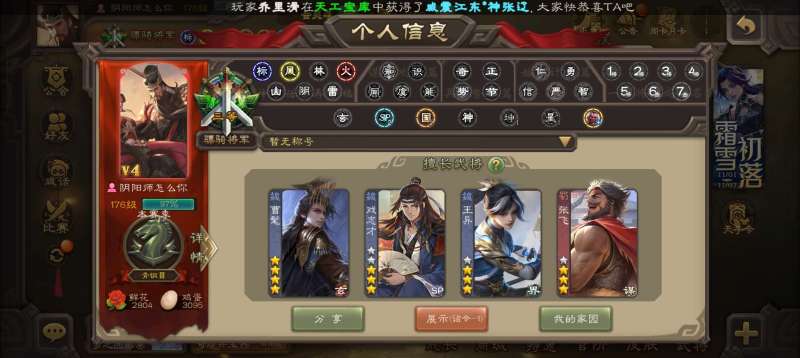 三史诗校尉排位强力小号,孙权荀彧关索武将动皮都有,5.9宝珠,也有大师奖励势夏侯,乐就