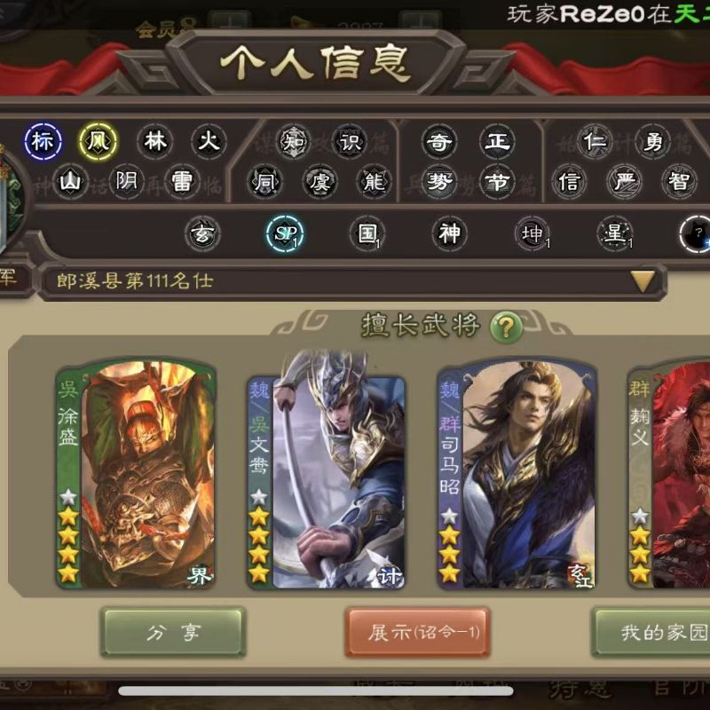 三国杀【安卓官方】神吕布谯周花鬘杨修左慈5史诗先锋,动曹冲谋韩当崔琰金皮界曹植137将