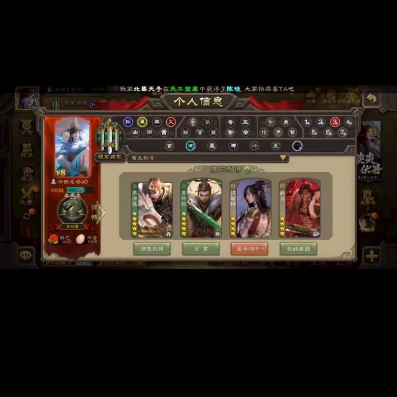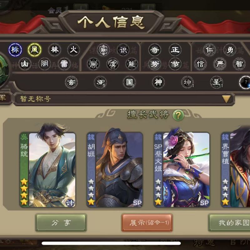 三国杀【安卓vivo】校尉134级有元宝树左慈神诸葛亮4个诗史皮肤王基等稀有武将众多2.2万多欢乐豆6个改名卡,具体看下面