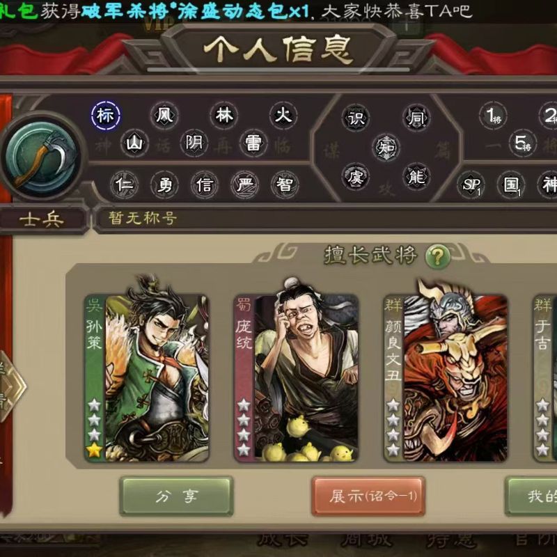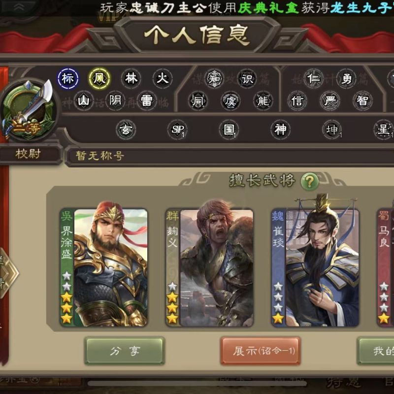 士兵20宝珠(可换大宝)马云禄10万羽毛8700将魂169