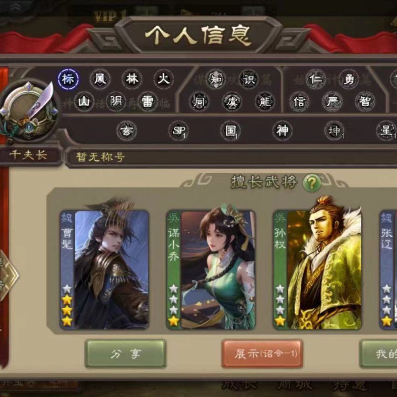 千夫长70宝珠(可换火龙果势魏延)4500将魂4万羽毛74