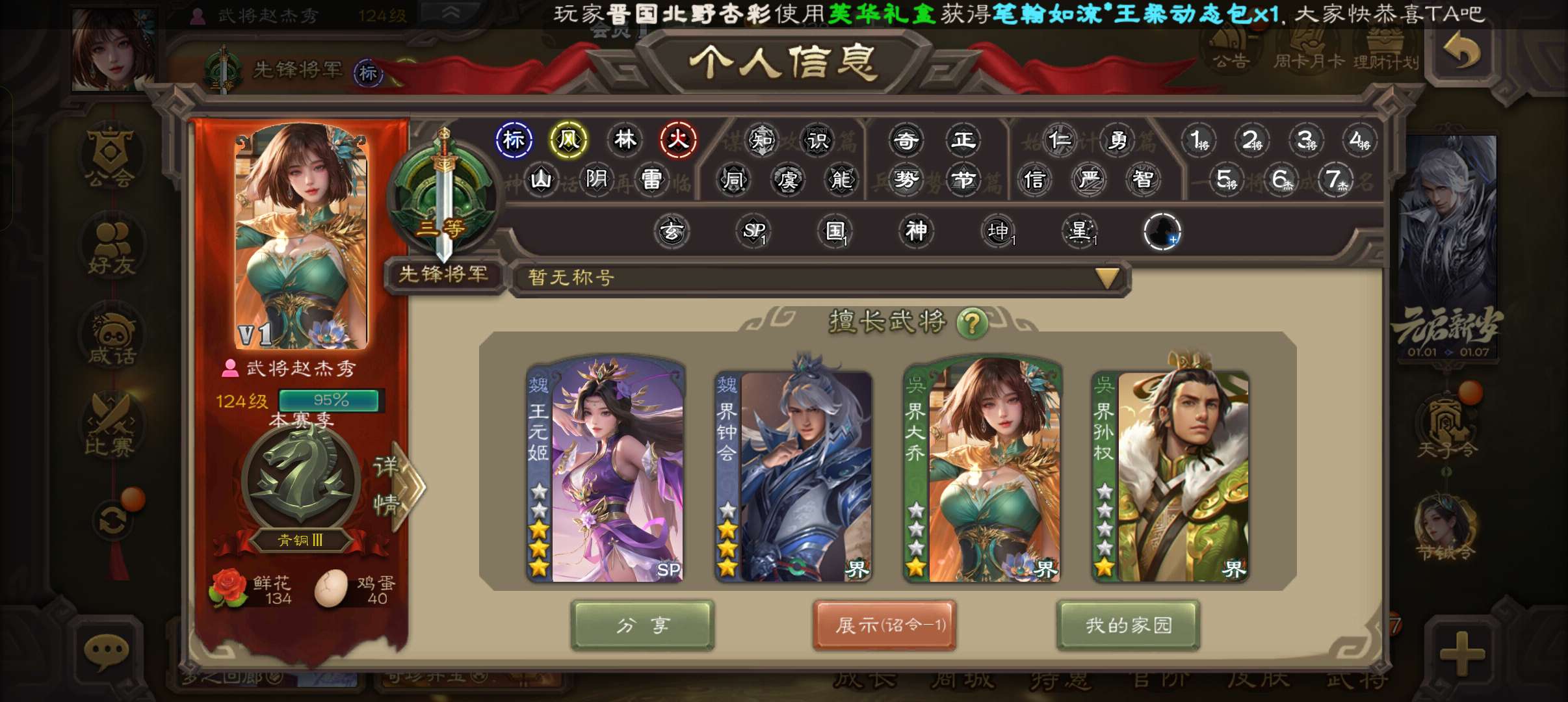 5史诗先锋,5.8万豆,大宝界徐盛回廊动态王元姬沮授界黄忠杨修,谋小乔谋韩当谋高顺甘夫人142将