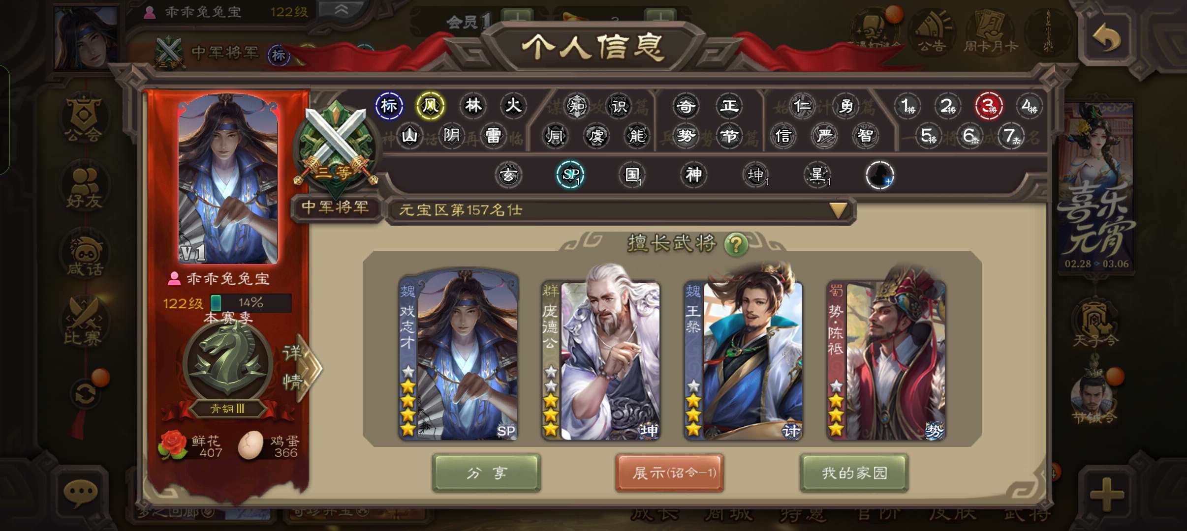 10万羽毛6500将魂5万豆,大宝界徐盛神赵云曹婴谯周4史诗先锋,神吕蒙甘夫人崔琰关银屏157将