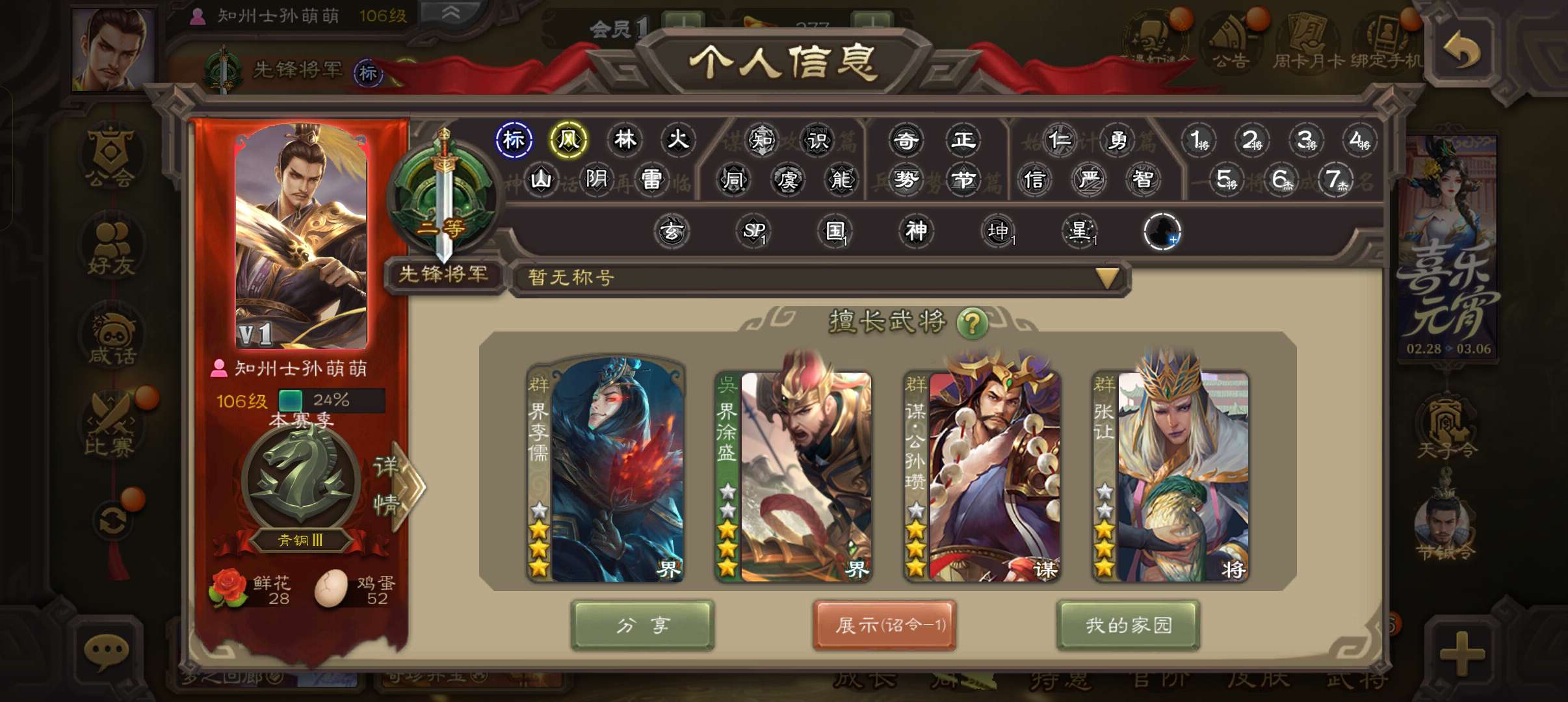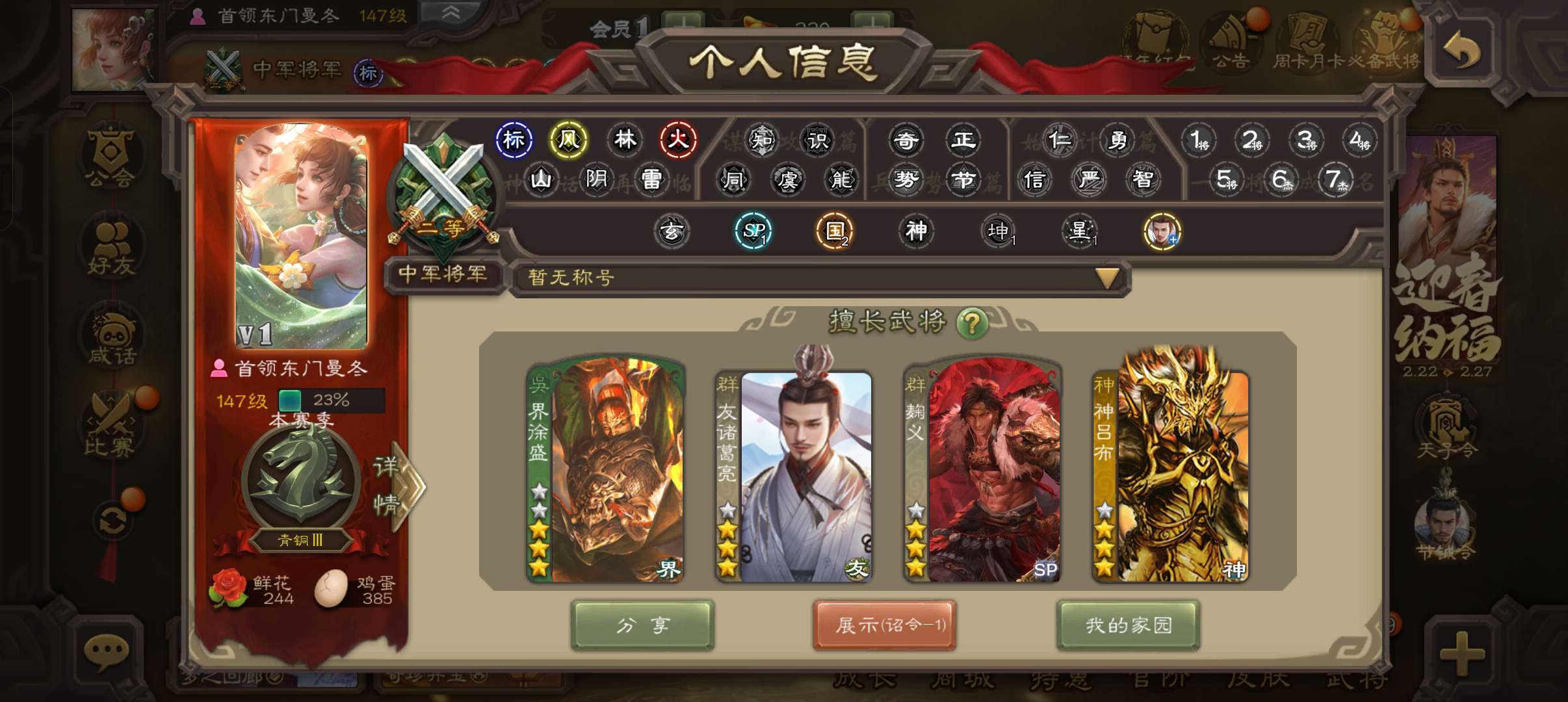 7.9万羽毛7万豆,友诸葛亮神赵云神吕布戏志才界钟会界于禁牵招10史诗中军,谋周瑜界满宠170将