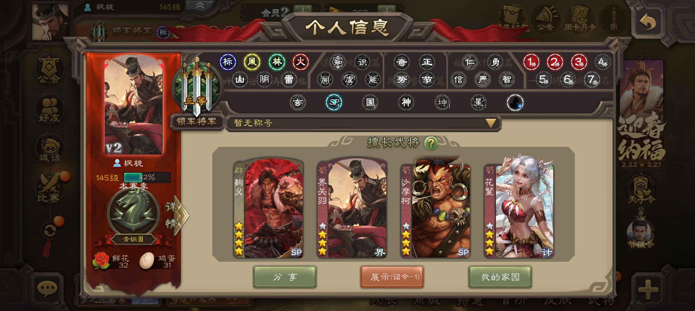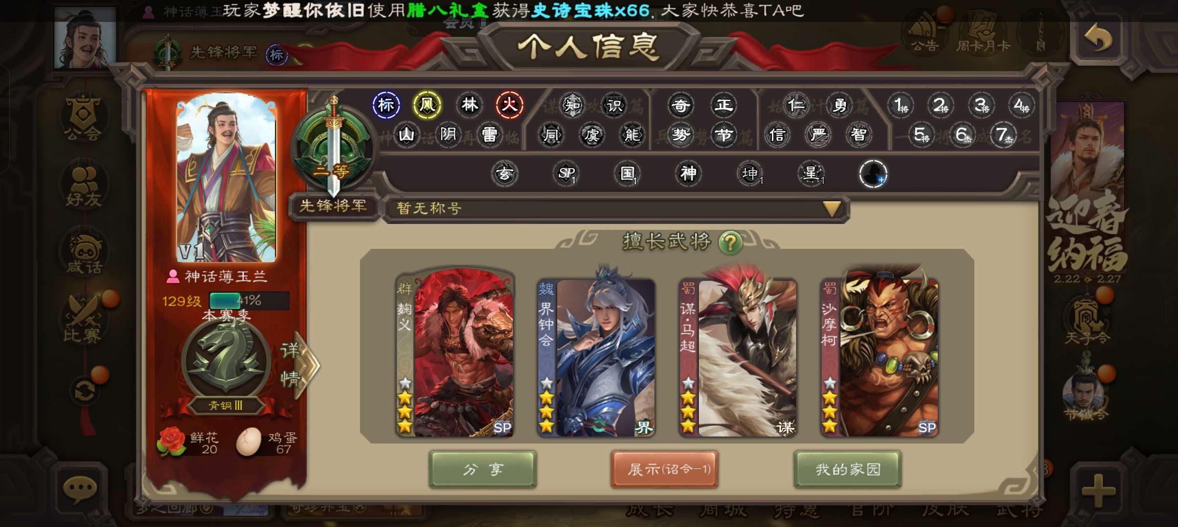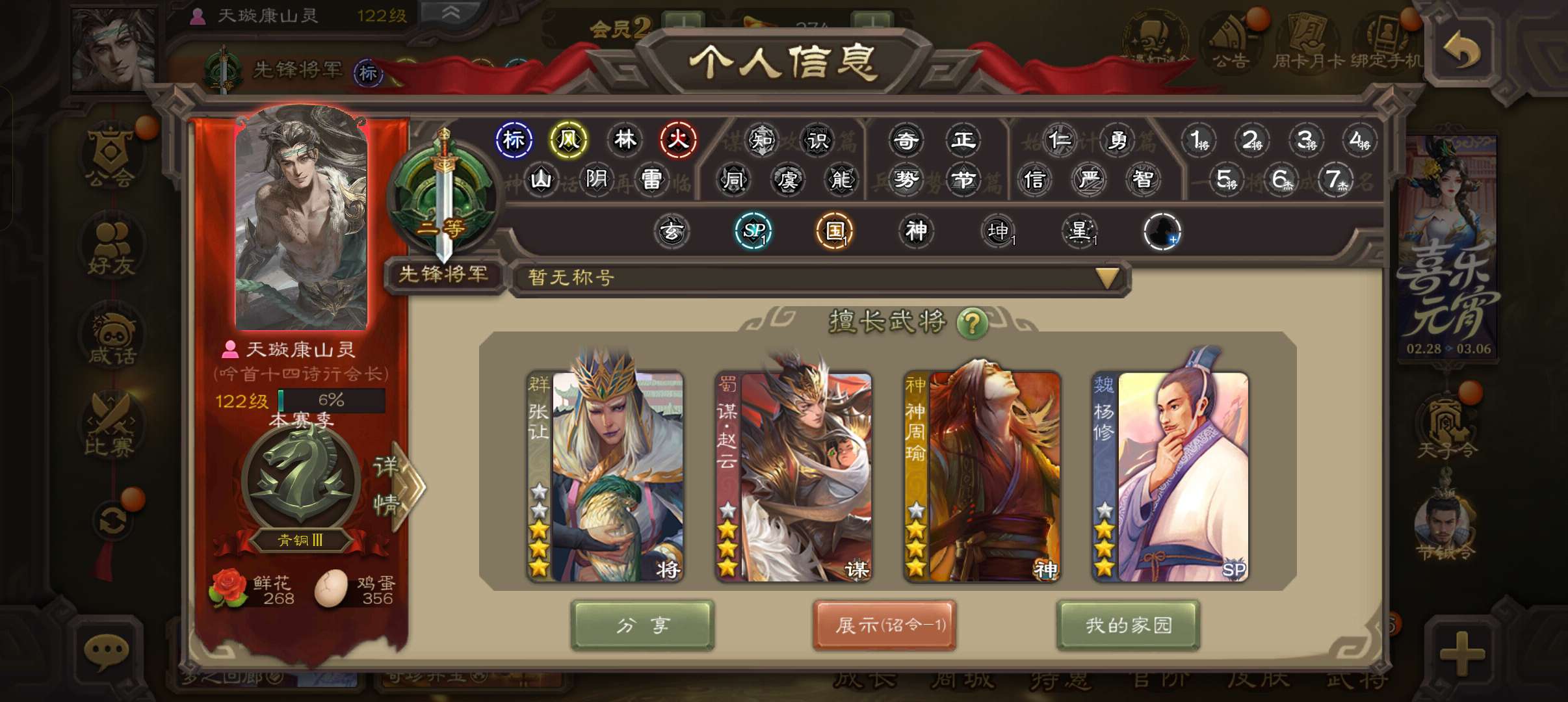 公会会长,4史诗双神先锋,张让谋赵云杨修左慈,红皮神周瑜神吕蒙界吕布阮慧界张嶷158将