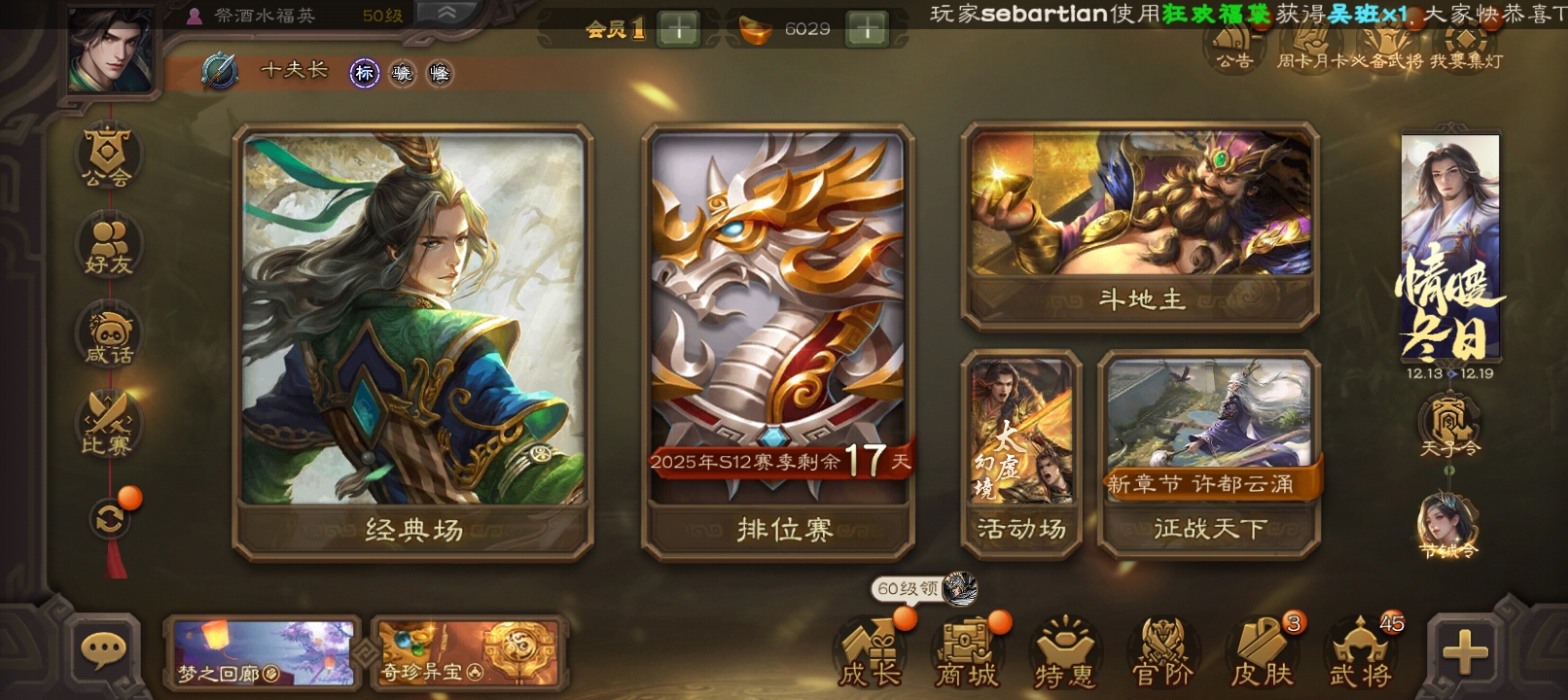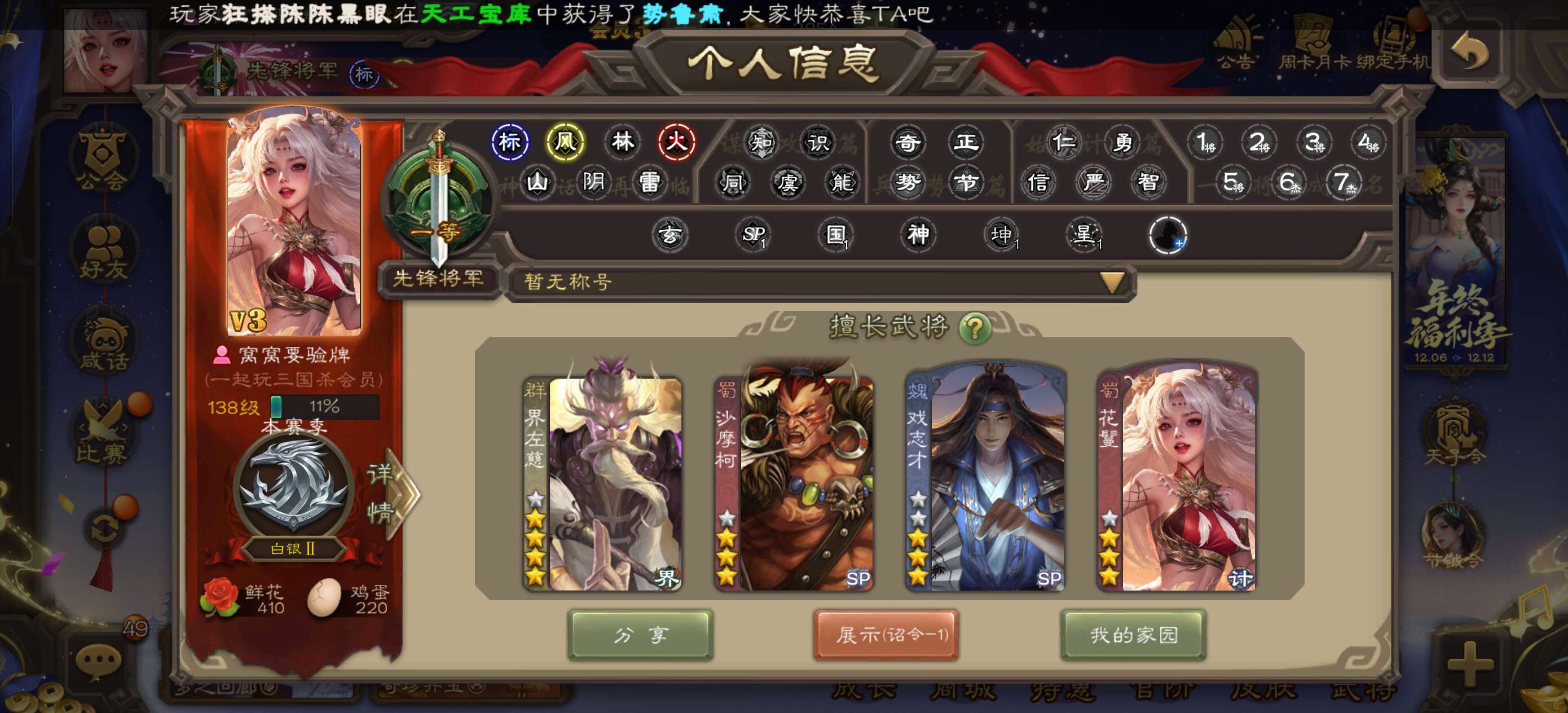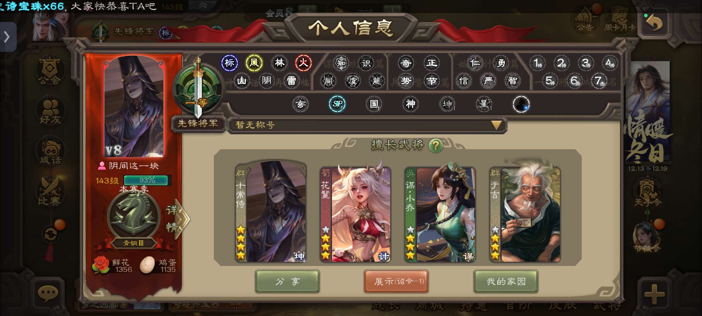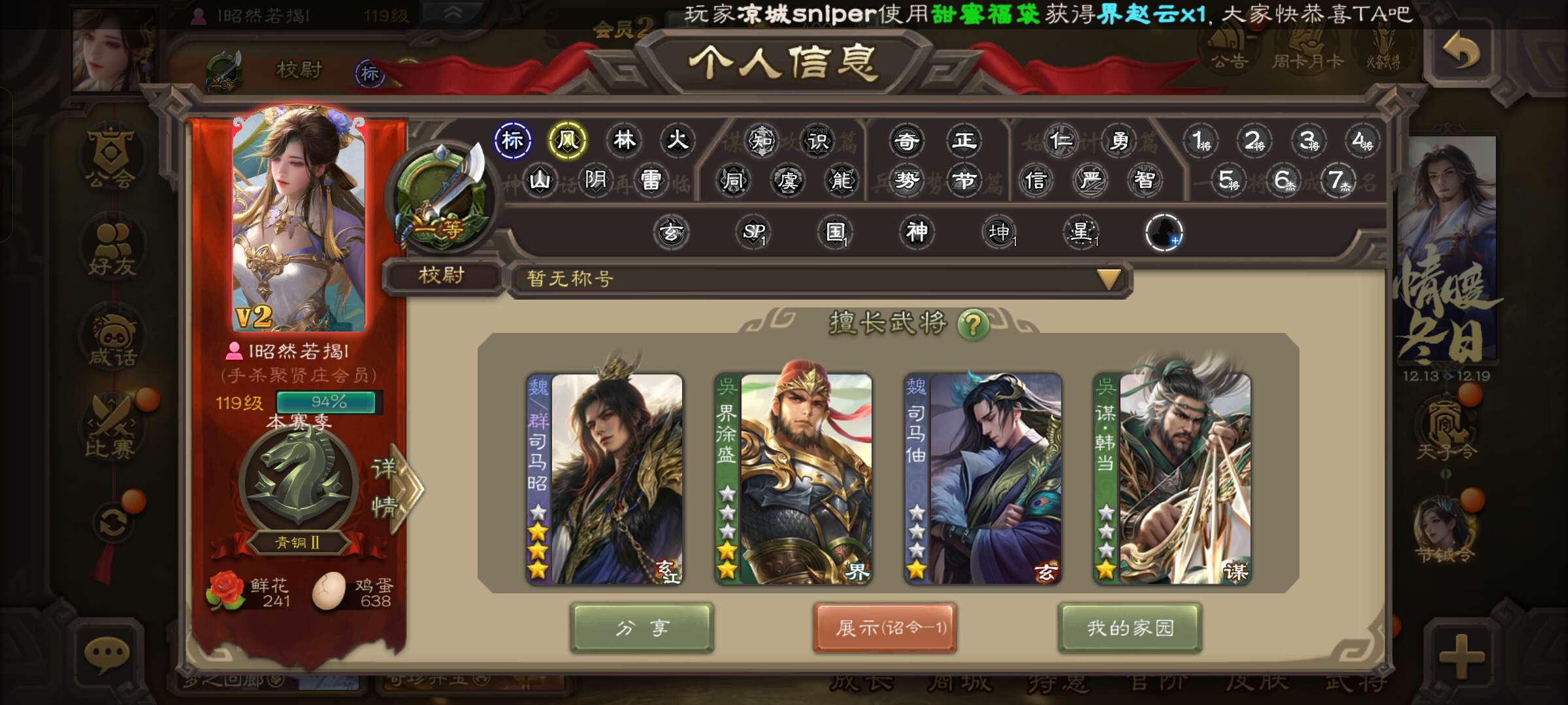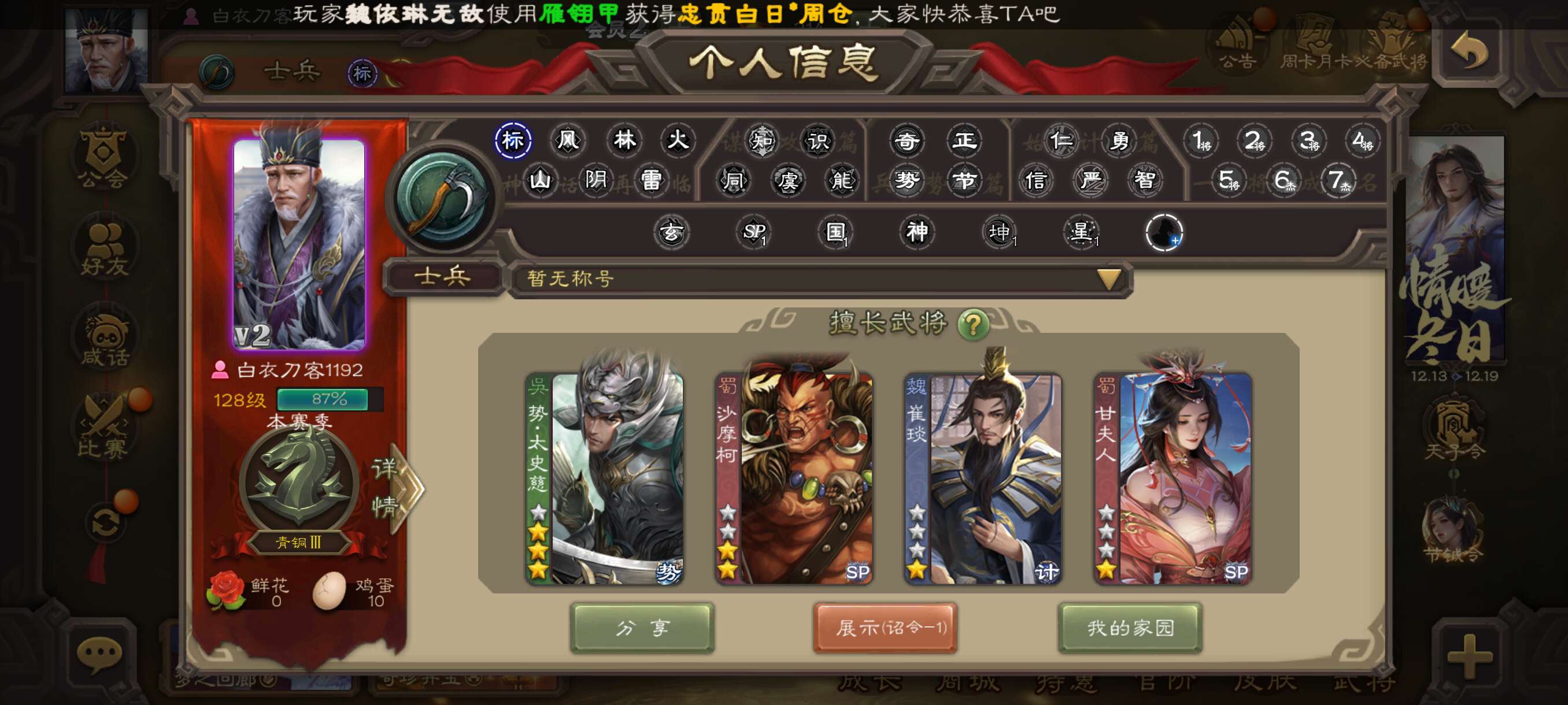 三等大将军 1.2w心愿积分 势太史慈/老宝/大鬼/裴秀/大宝/小鸟/老宝/曹髦