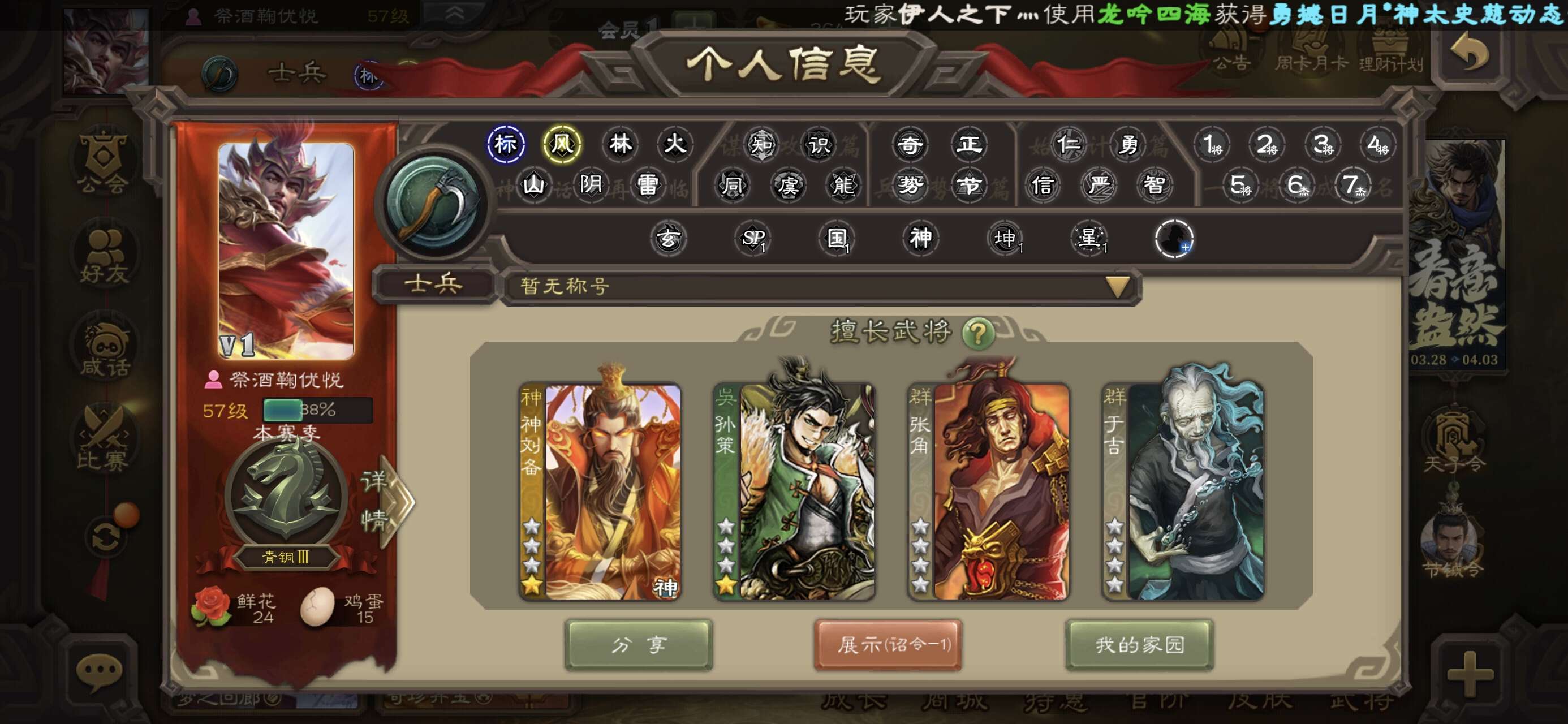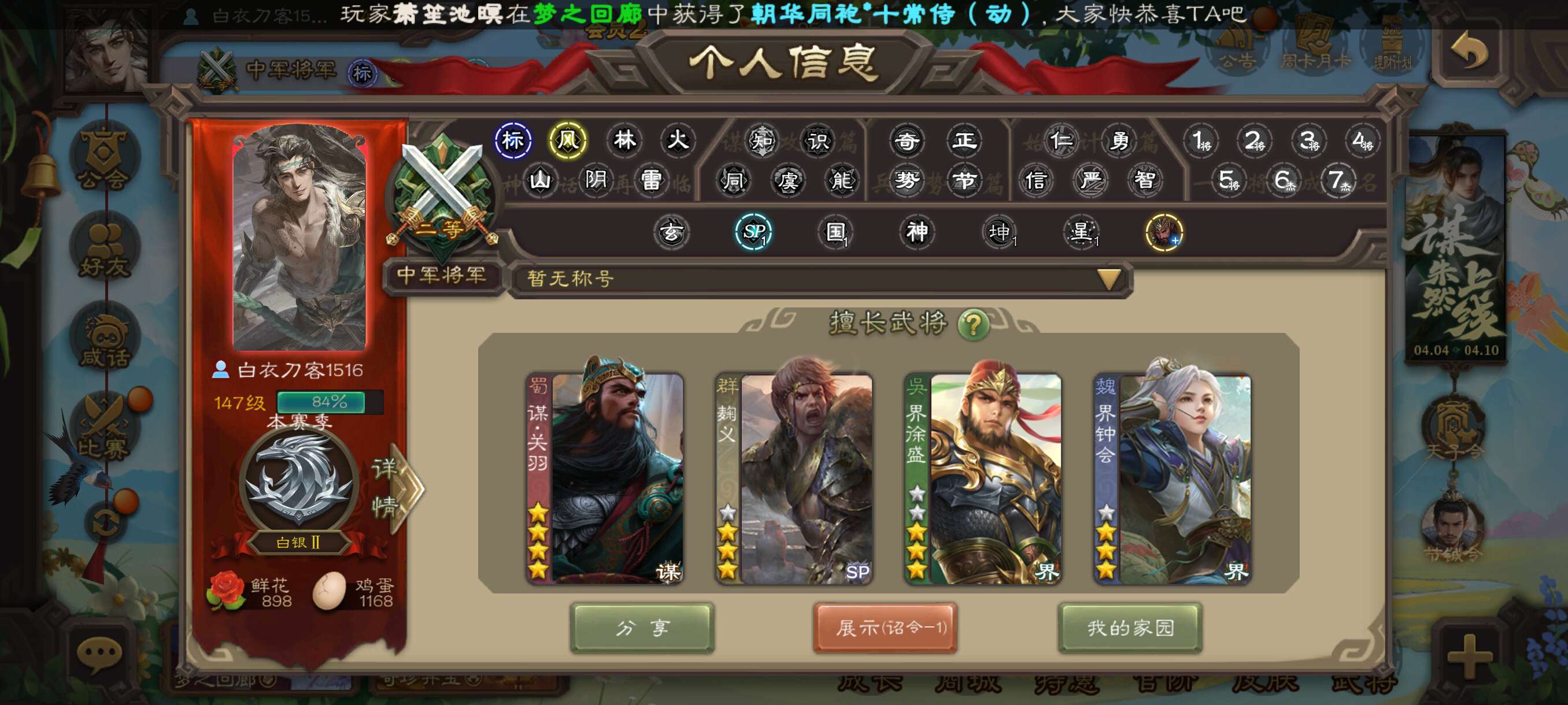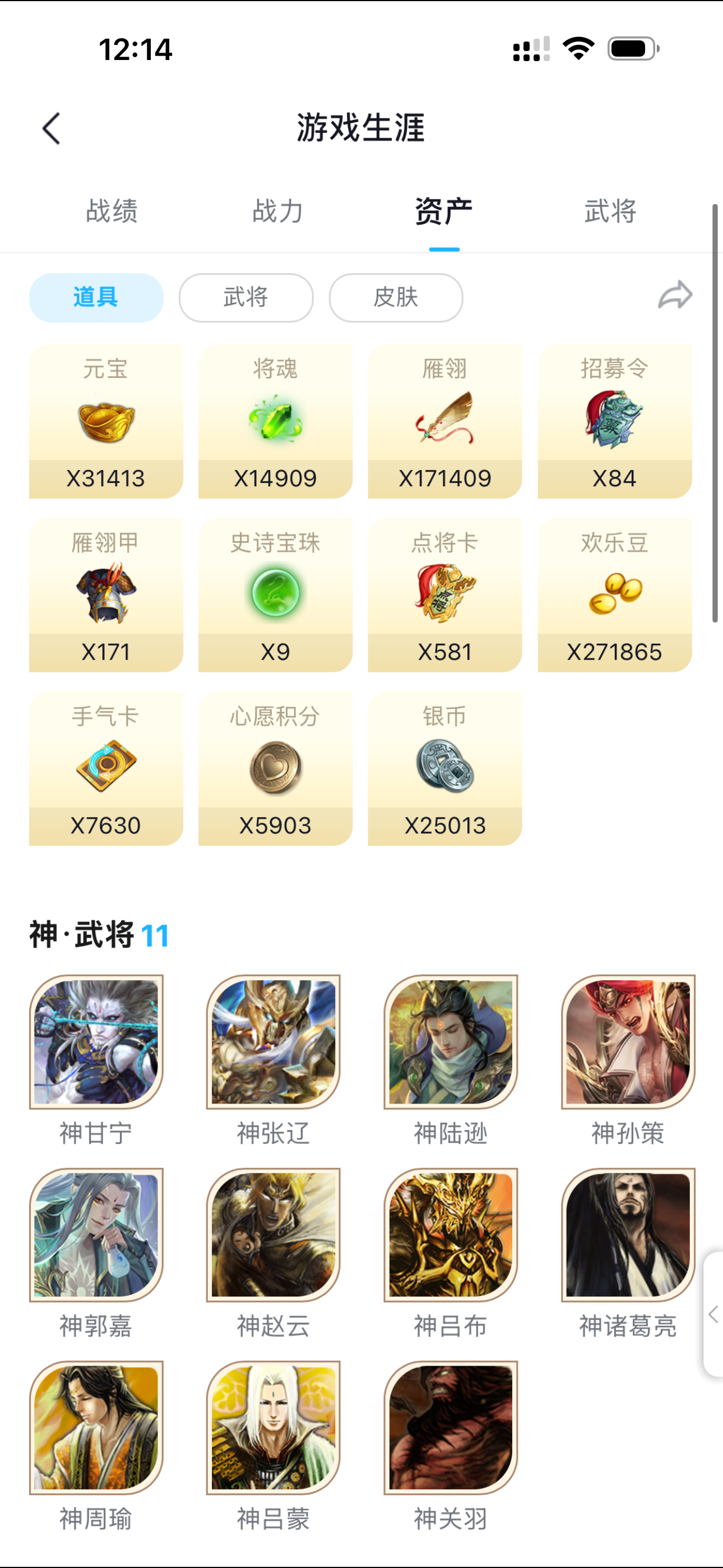 一等大将军81史诗,多强将,三卡齐全,斗地主欢乐豆27万。