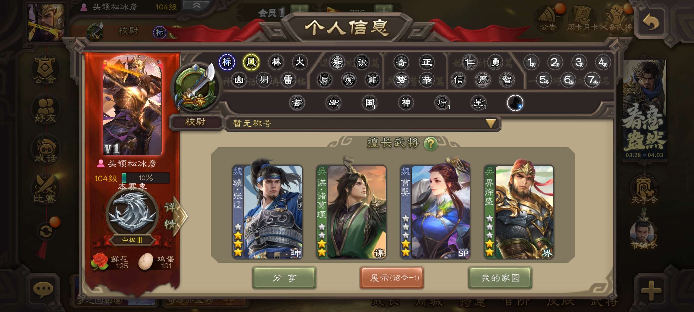 三国杀移动版骥张辽,大宝,势田丰 曹婴,还有诸葛瑾,二三千三卡,豆票二万多