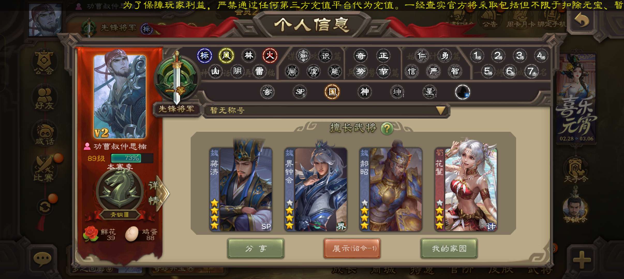 4史诗4神先锋,5.6万豆,乌鸦动态界钟会神吕布神刘备谯周,神吕蒙神周瑜霍峻谋卢植谋高顺崔琰143将