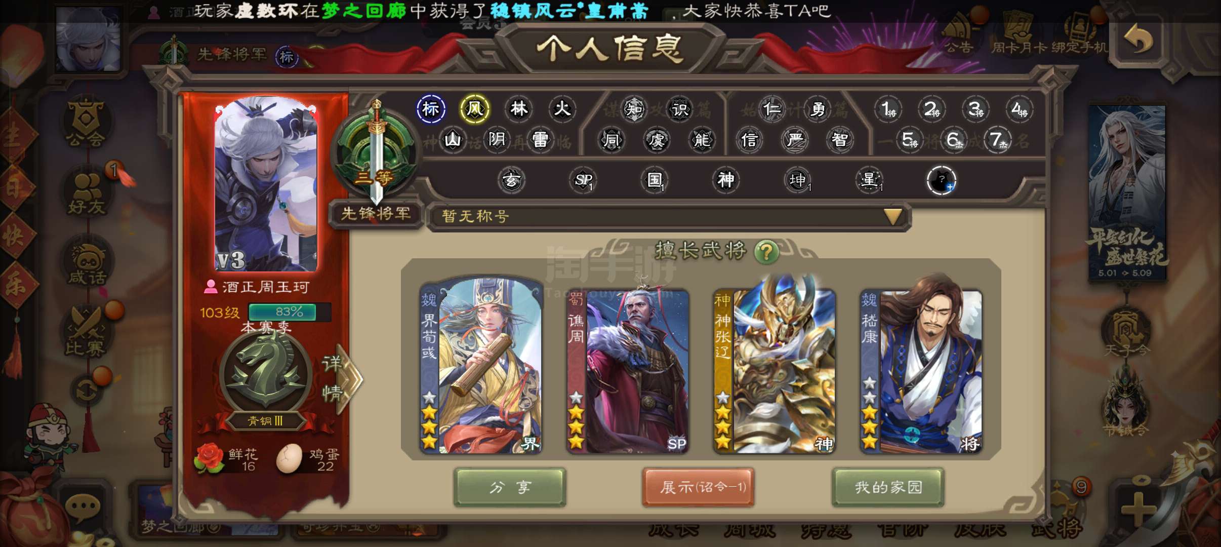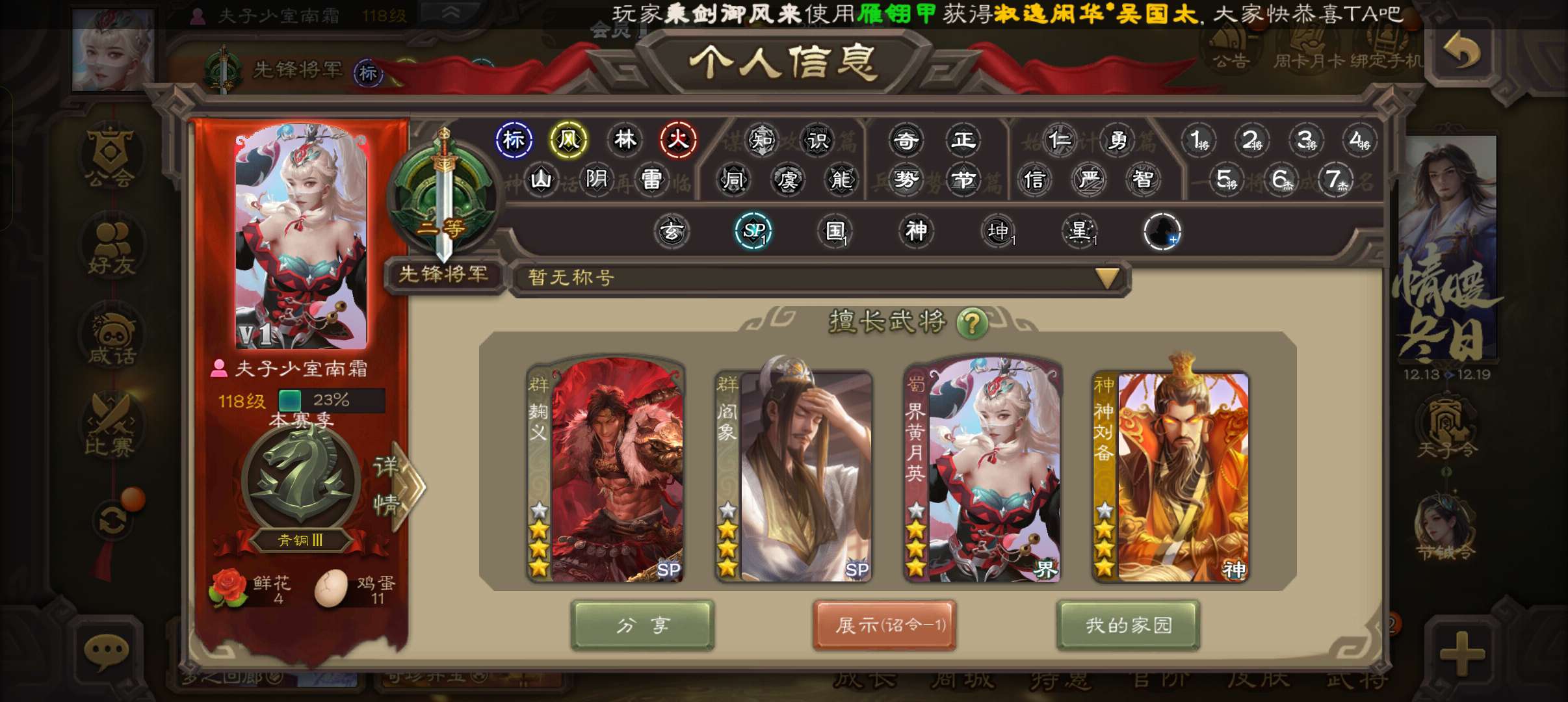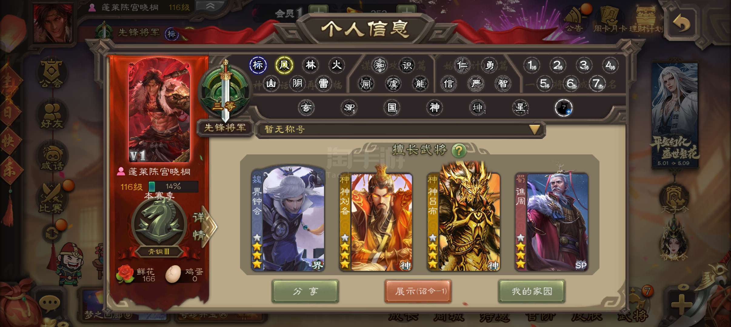 4史诗4神先锋,5.6万豆,乌鸦动态界钟会神吕布神刘备谯周,神吕蒙神周瑜霍峻谋卢植谋高顺崔琰143将