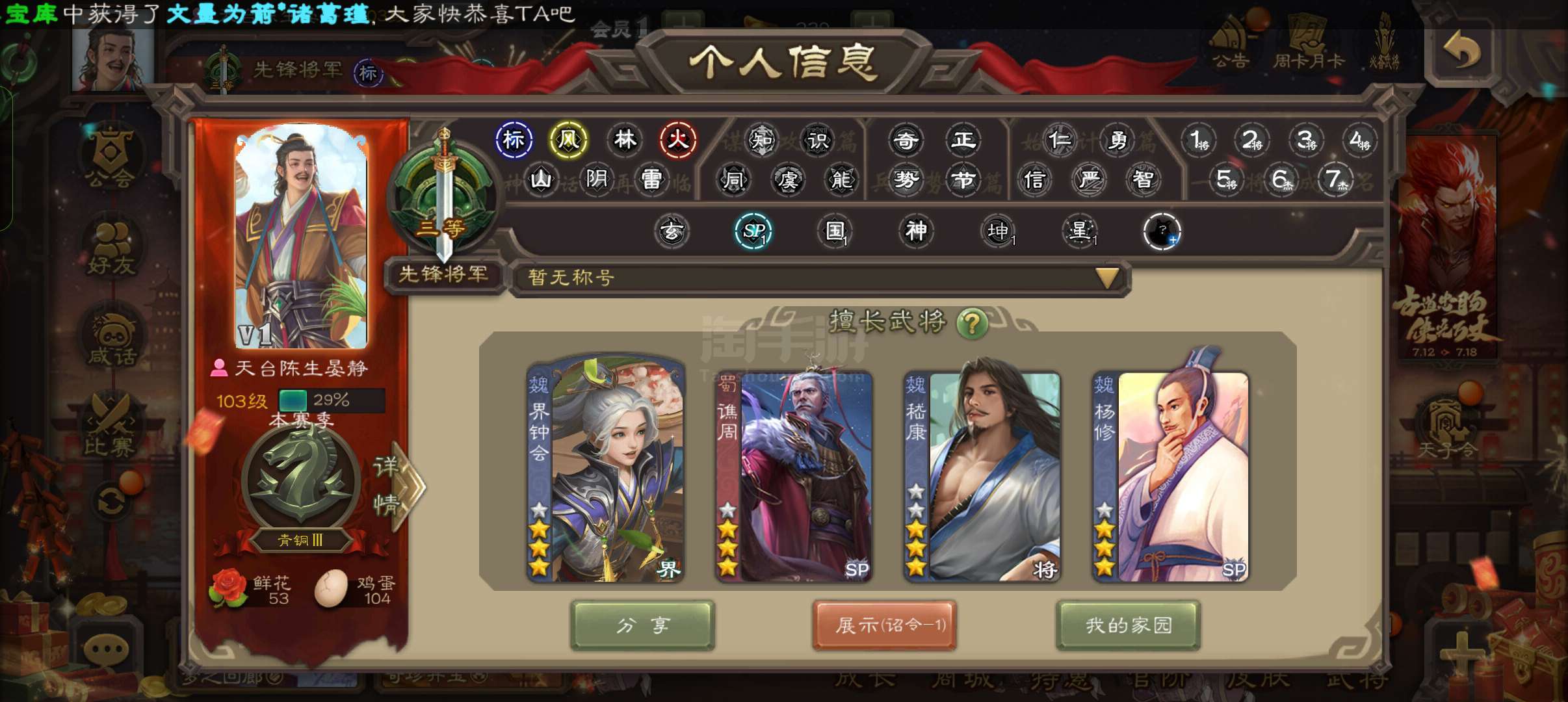三国杀 自养大将军号 29史诗武将 31动态皮肤 可小刀