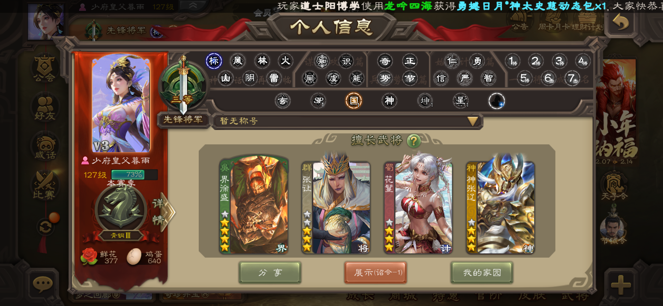 47.8宝珠9万羽毛1.2万将魂7万豆,谋夏侯惇界钟会花鬘3史诗先锋,天工吴柯,sp赵云149将