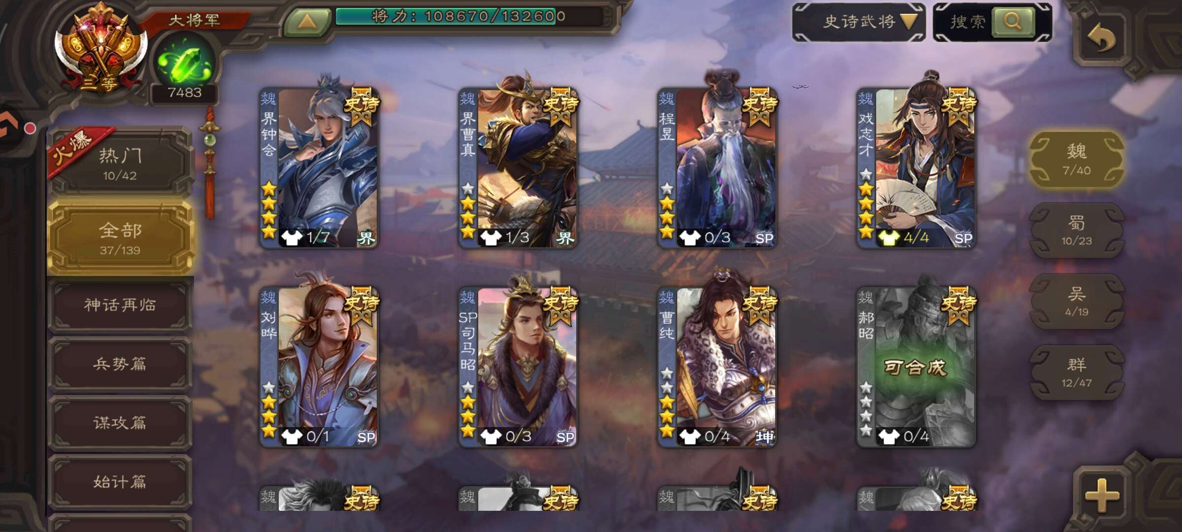 7史诗双天工中军,司马孚闫象,回廊动白马神吕布神赵云界钟会戏志才谋赵云程昱,动诸葛果动孙茹162将