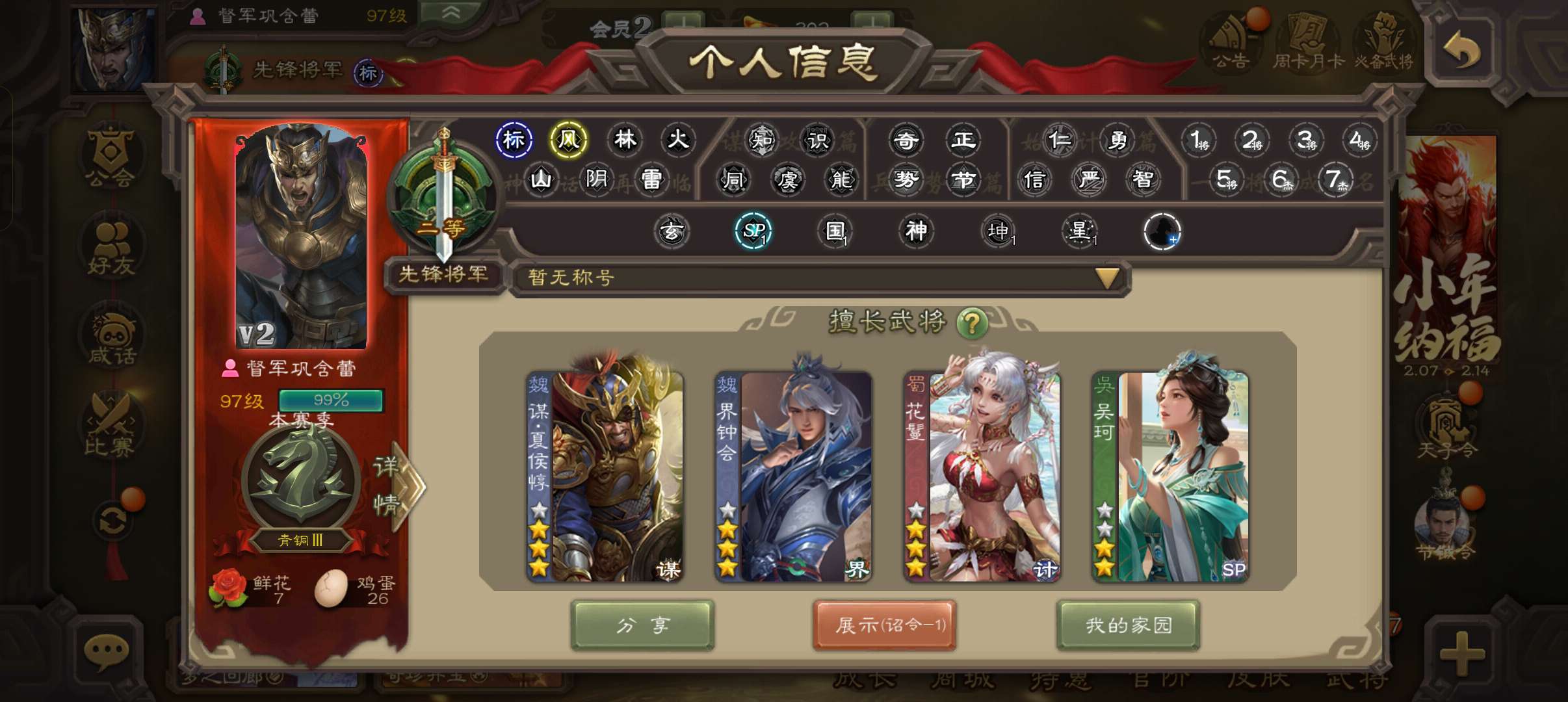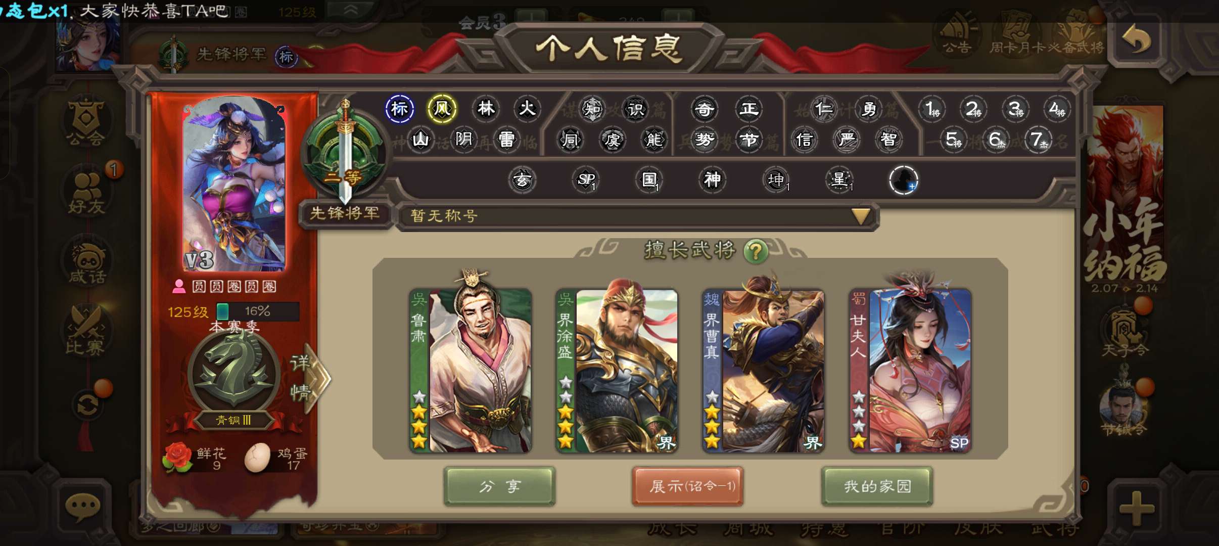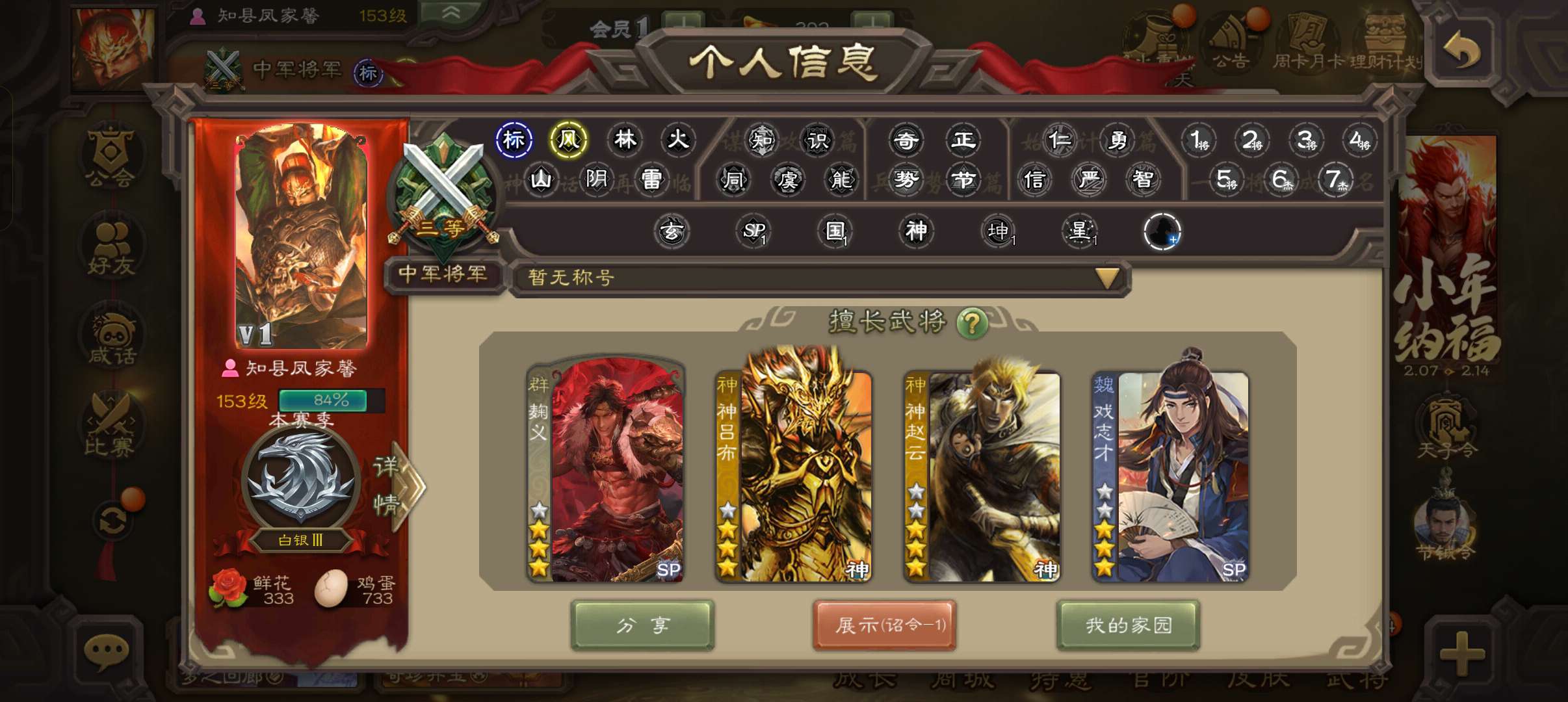 8万羽毛1.3万将魂7万豆,大宝界徐盛界曹真双史诗先锋,甘夫人谋卢植谋高顺谋小乔势陈到158将