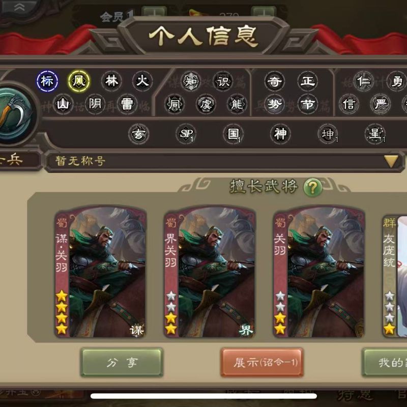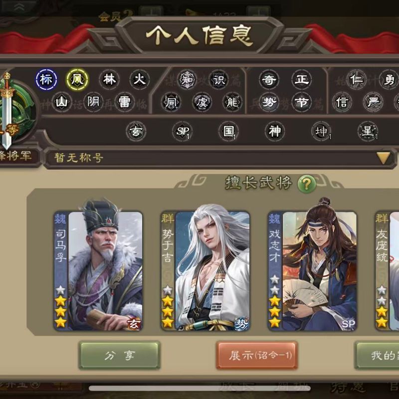 先锋司马孚+势于吉+戏志才+7万羽毛三卡