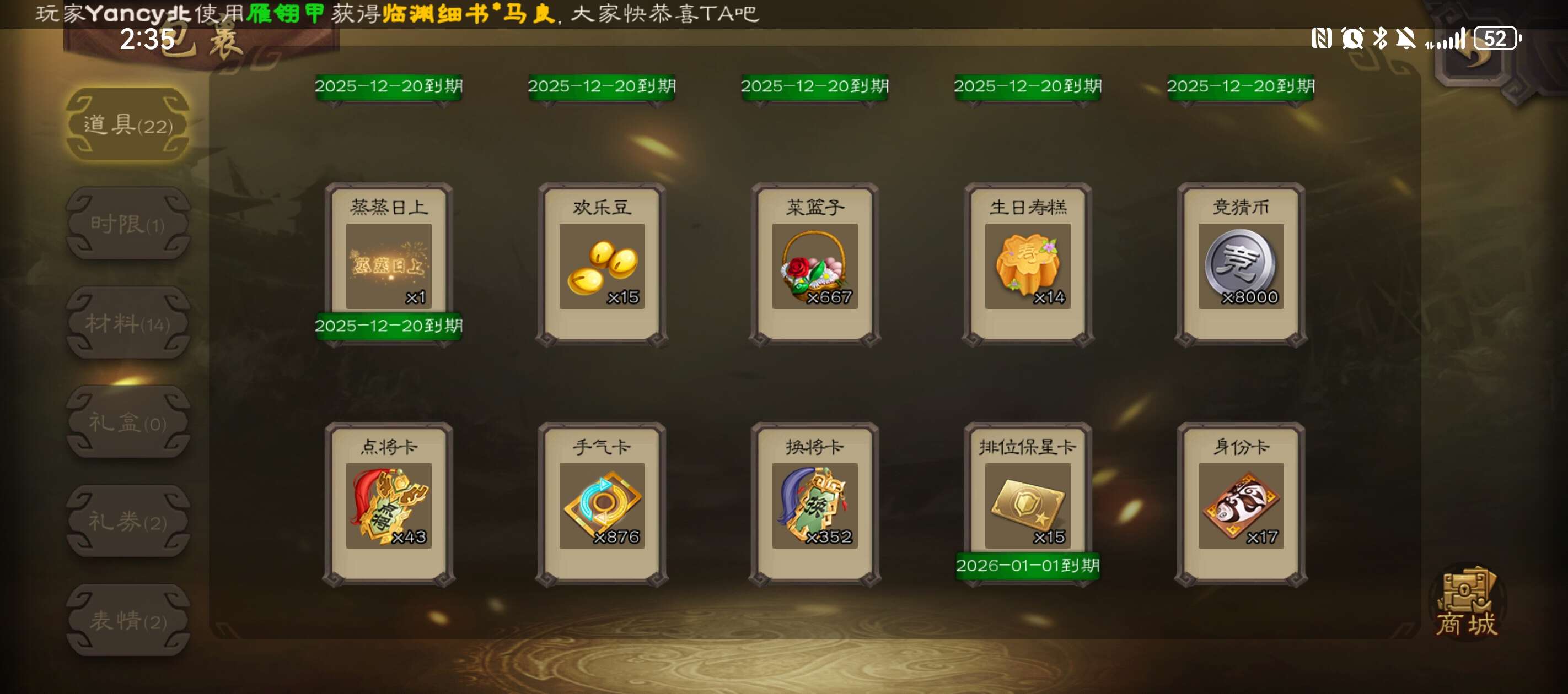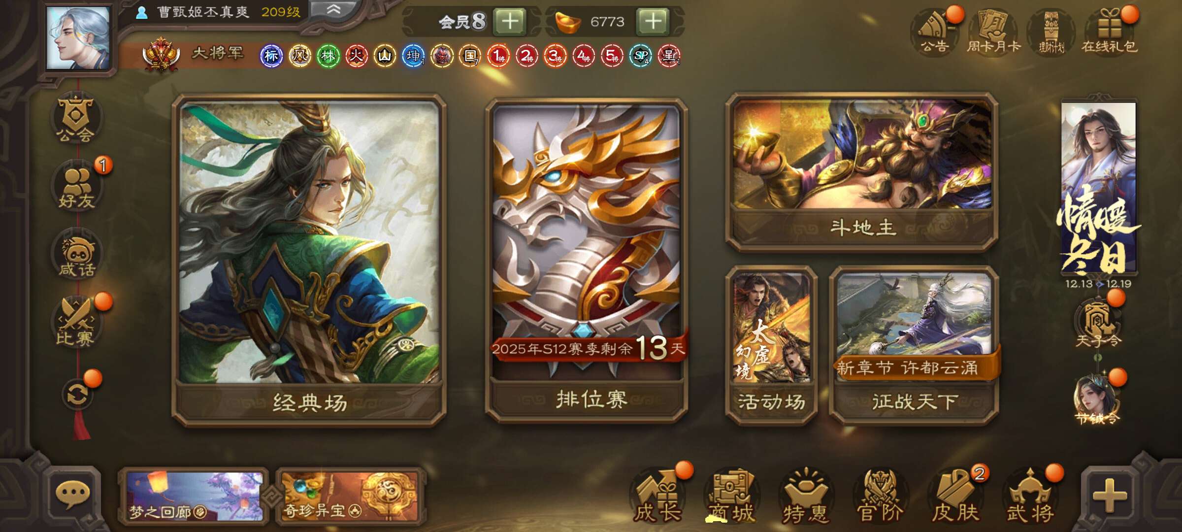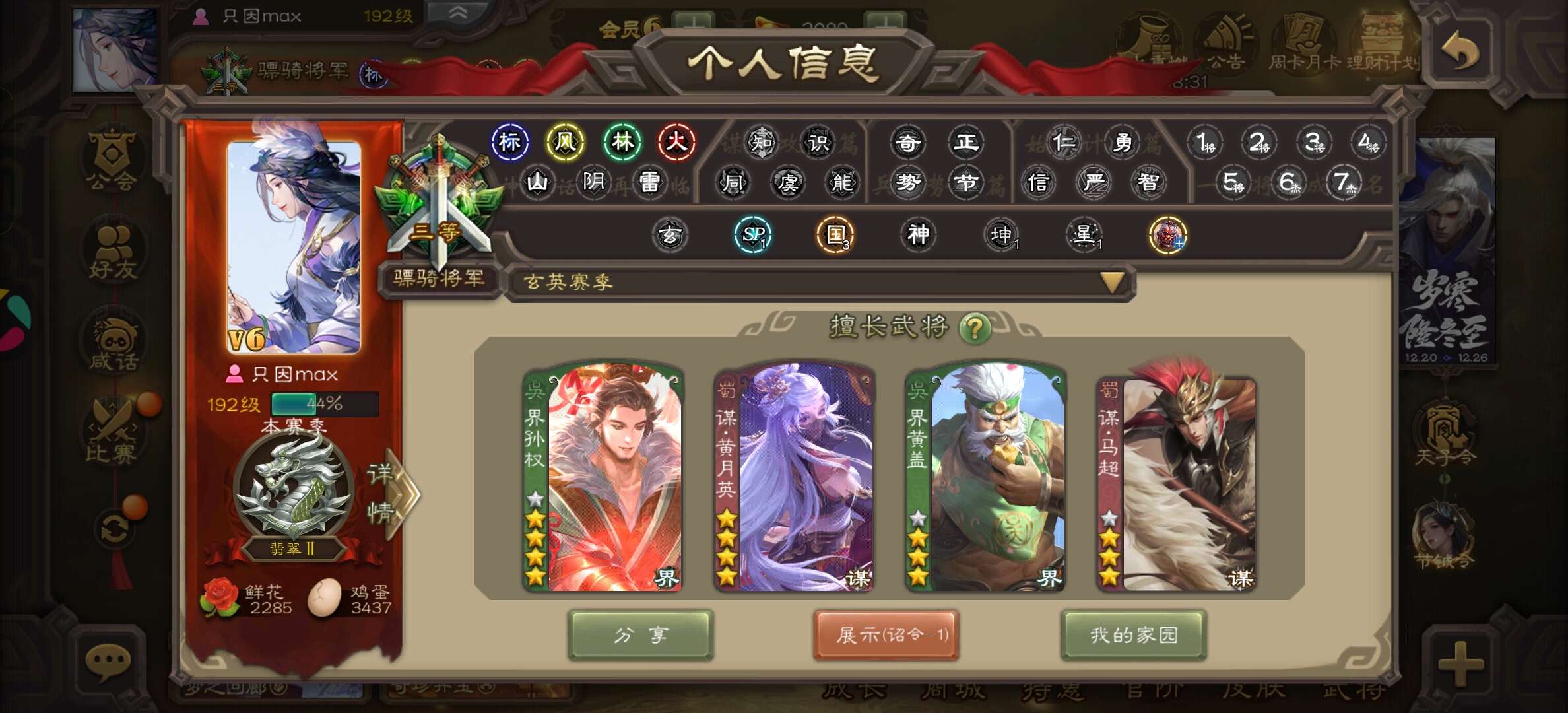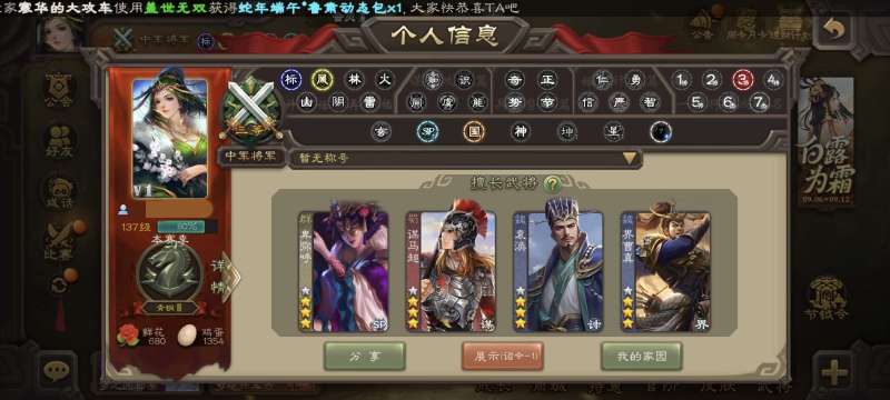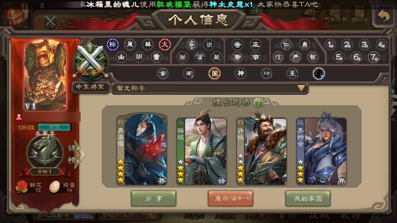 势太史慈,动态谋诸葛,以身证道谋郭嘉,顶级天官友徐庶势杨宏,1w将魂8w毛1w元宝,三卡充足