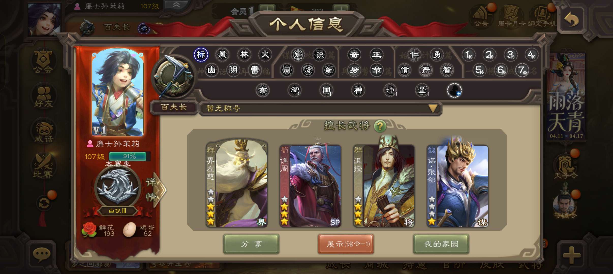 5史诗先锋,1.2万将魂9万羽毛7万豆,界钟会神刘备界曹真界朱然谯周,甘夫人骥李典界满宠155将