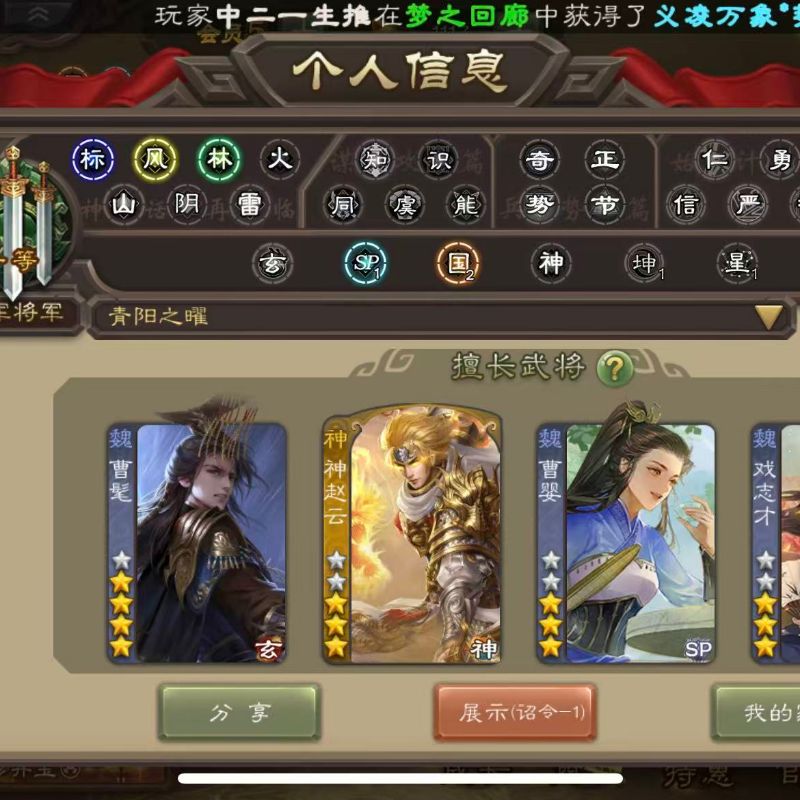 大宝 动谋曹丕 动王灿 神赵云 三卡充足