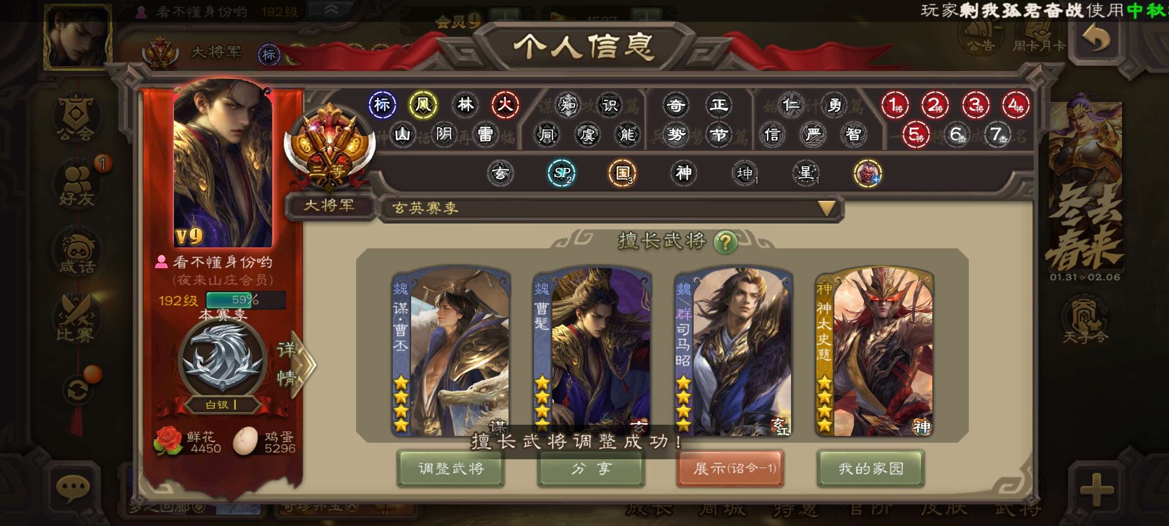 百夫长4史诗大宝界徐盛7300将魂7.1万羽毛135招募令三卡