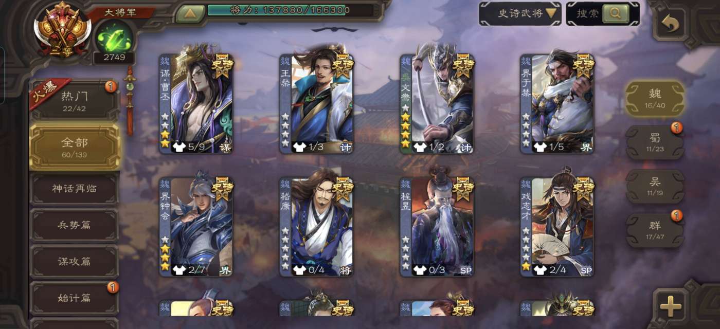 7500魂6.6万羽毛,界钟会公孙康谯周3史诗先锋,甘夫人谋高顺关银屏界孙休142将