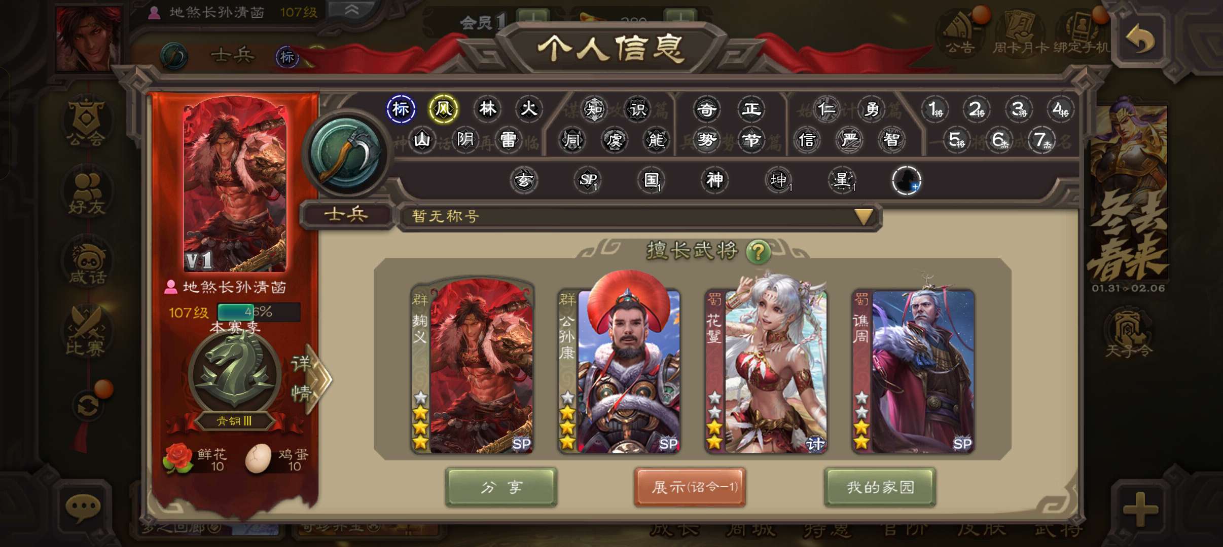 百夫长70宝珠4400将魂4.3万羽毛69招募令三卡