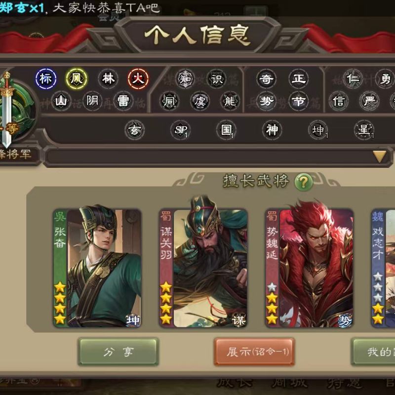 千夫70宝珠谋关羽5000将魂63招募令三卡