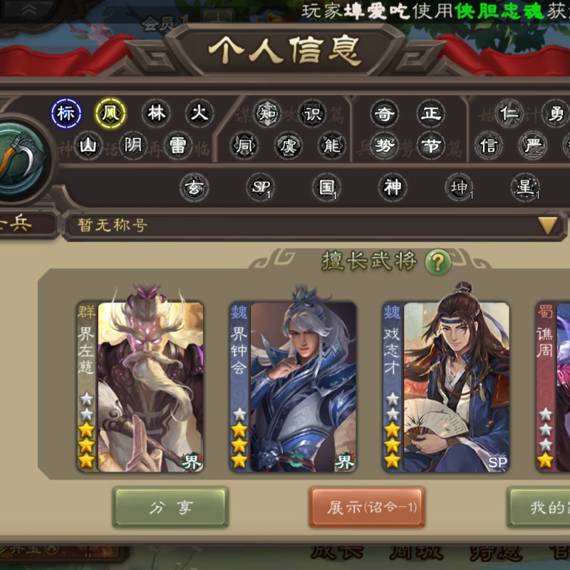 千夫长势邓艾界曹真10宝珠5600将魂4.6万羽毛77招