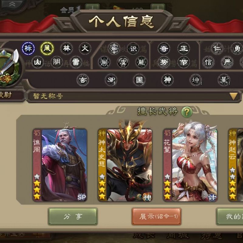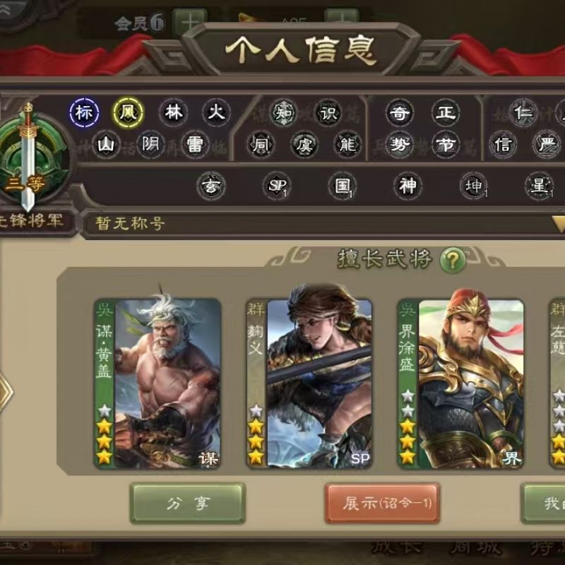 玉龙动态神司马懿+界徐盛+星甘宁+神刘备精品中军将军!三卡充足,官服字母格式活绑