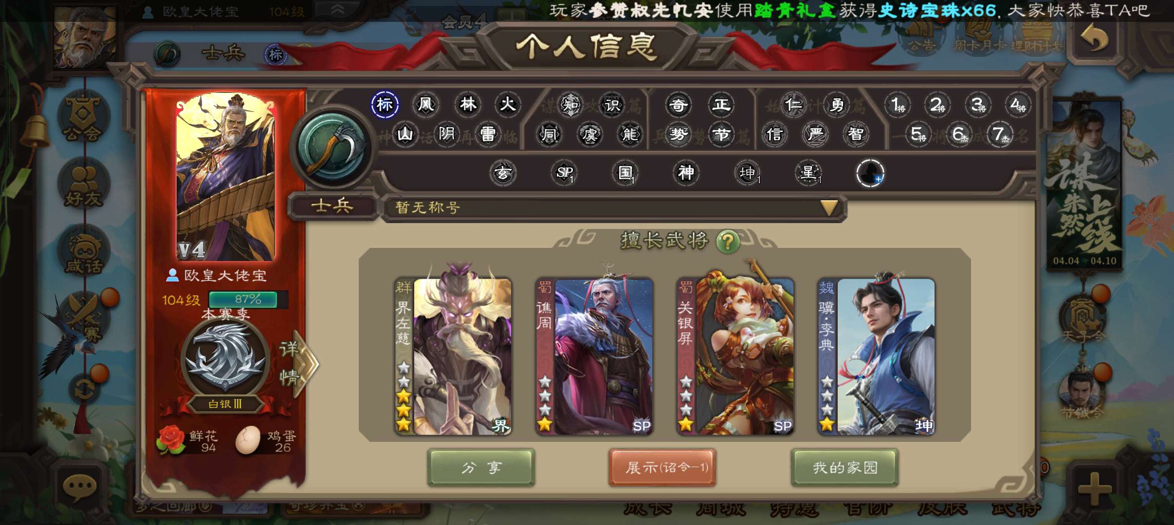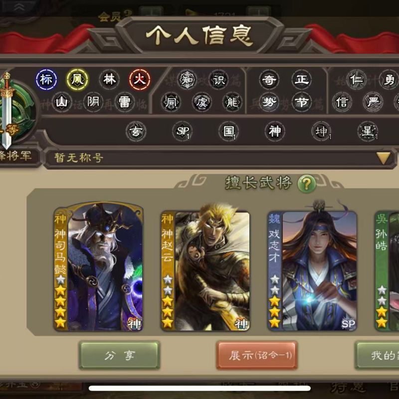 三等大将军 1.2w心愿积分 势太史慈/老宝/大鬼/裴秀/大宝/小鸟/老宝/曹髦