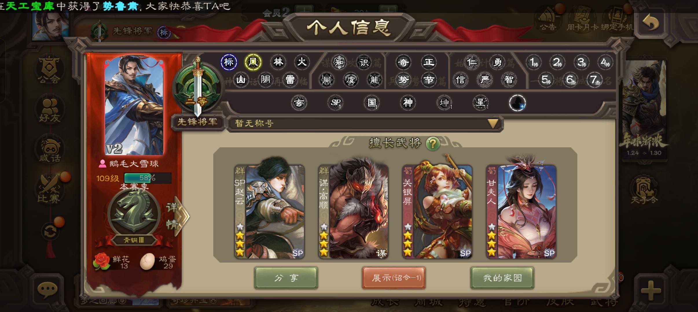 无废将小号,34宝珠8万羽毛6460魂,谯周谋张飞甘夫人谋小乔谋卢植77将,113招募令